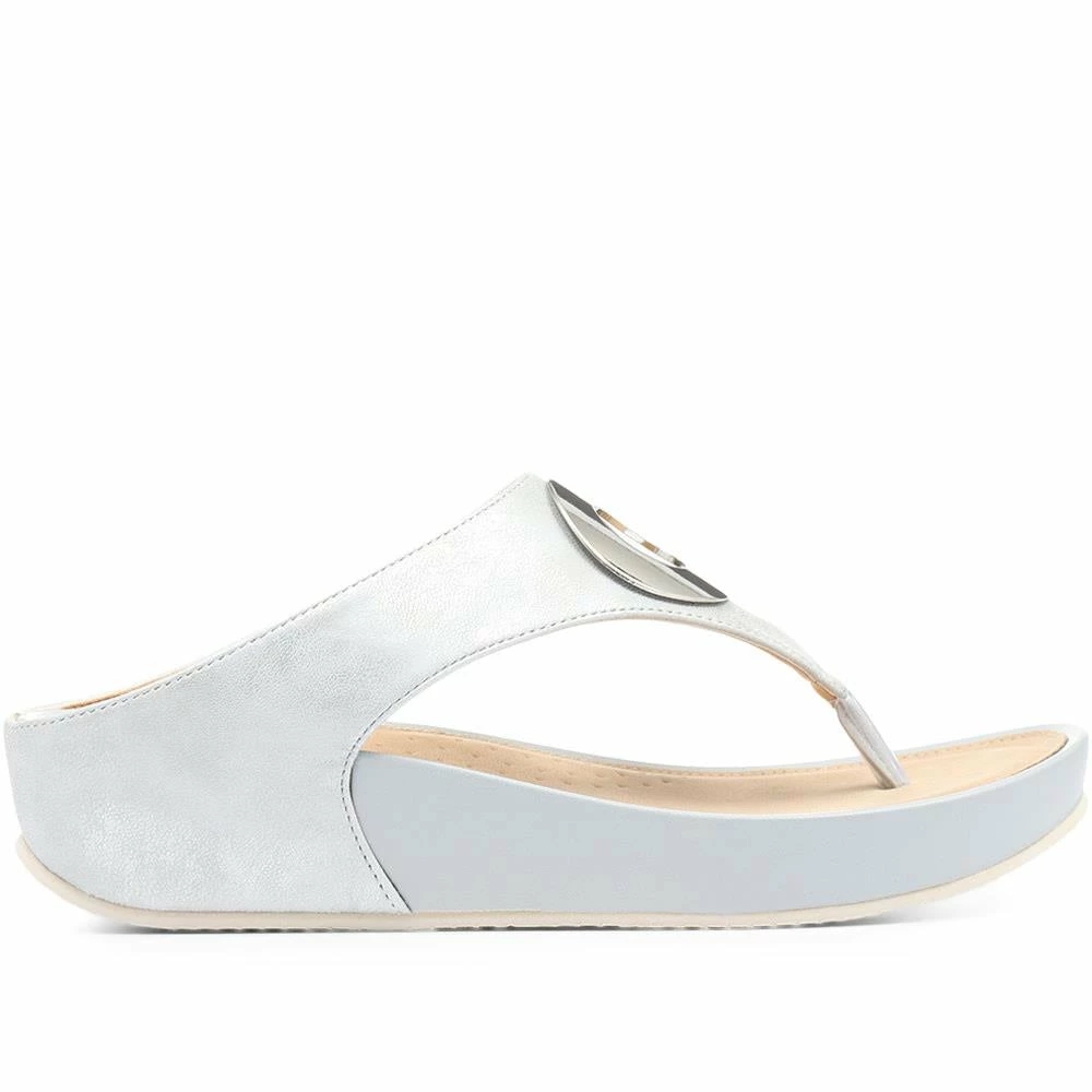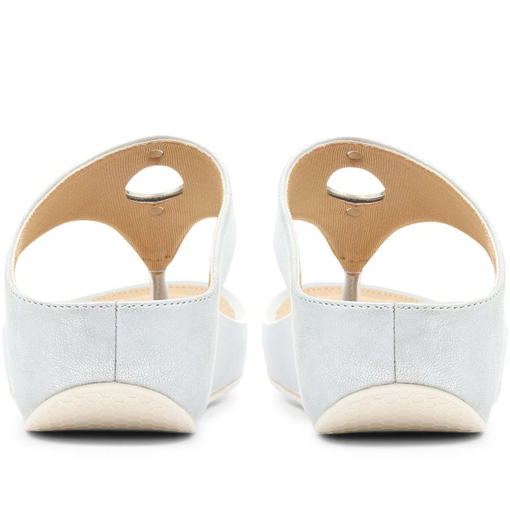 Make a sophisticated style statement this summer with our metallic toe posts. The pearl effect straps embrace the foot ensuring a secure fit, poised on a super lightweight sole with low wedge heel adding an elegant lift to your sunny days, complete with a cushioned insole for divine, lasting comfort.