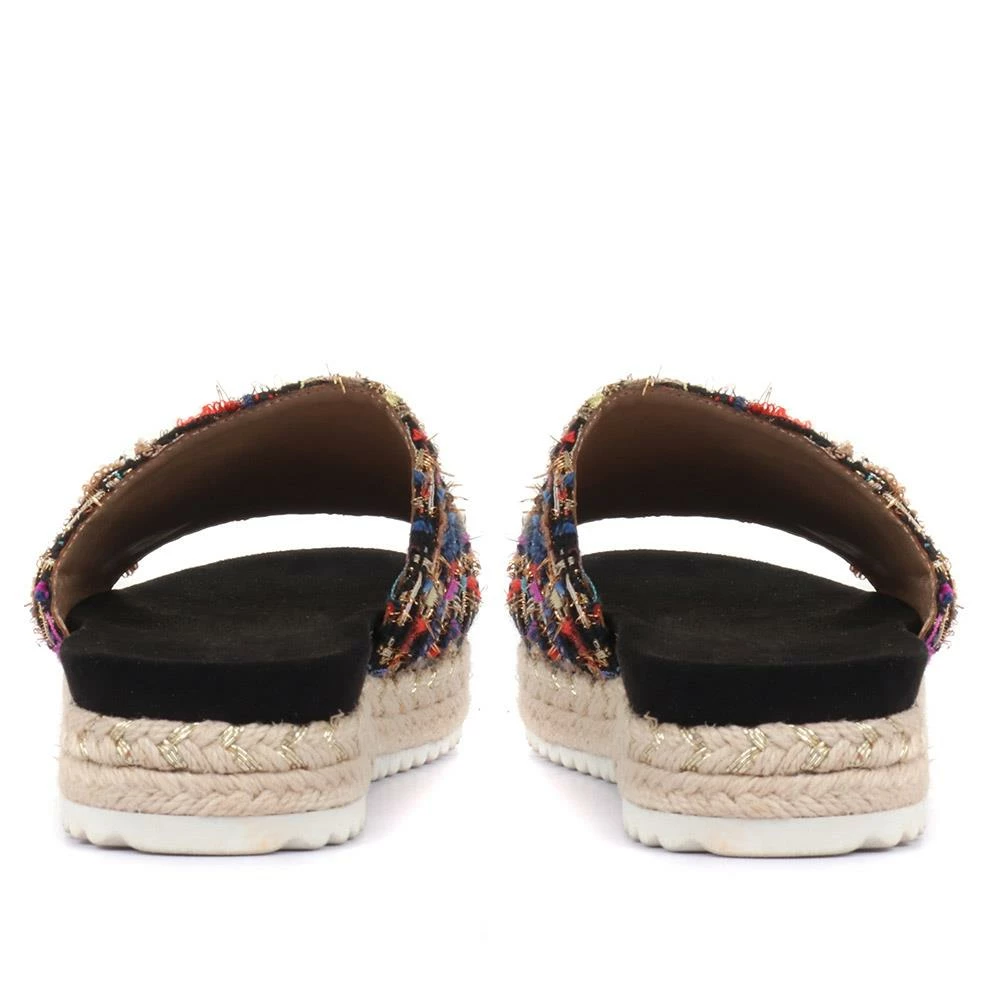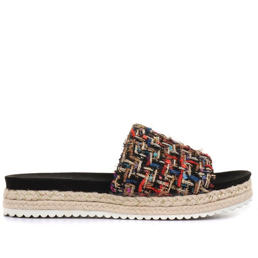 In equal parts stylish and easy-going, these platform sandals offer the perfect update for your summer wardrobe. The single mule strap is made with a tweed inspired upper that complements the braided espadrille sole, complete with a deep cushioned insole and traction outsole. Slide these sandals on with everything from your weekend jeans or floaty summer dresses.