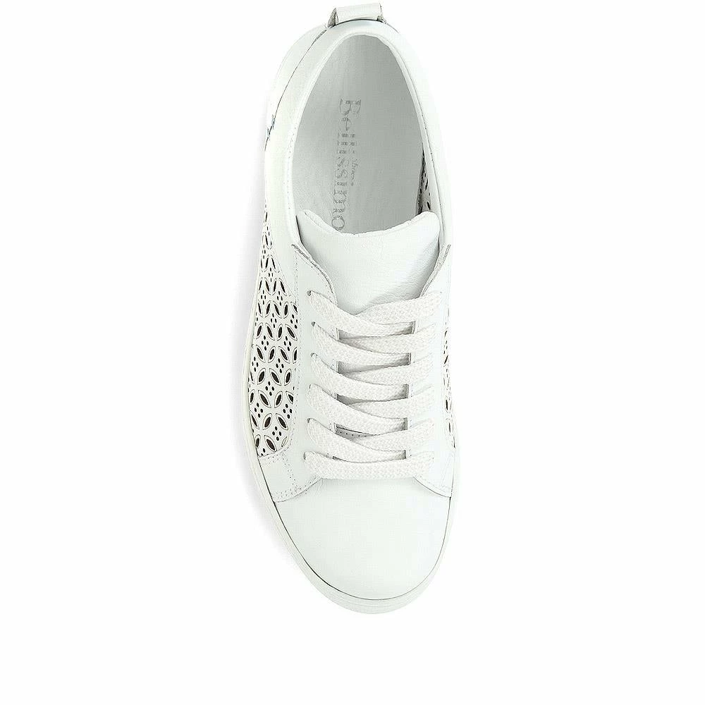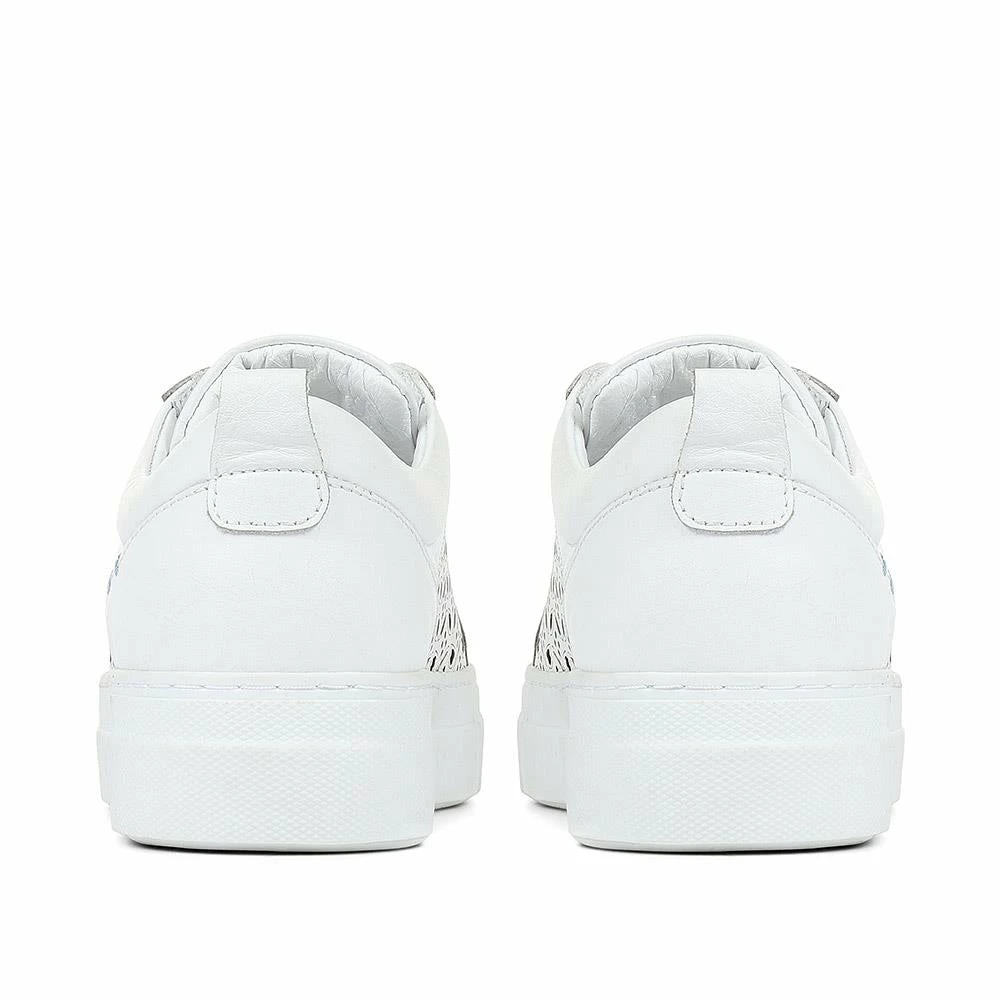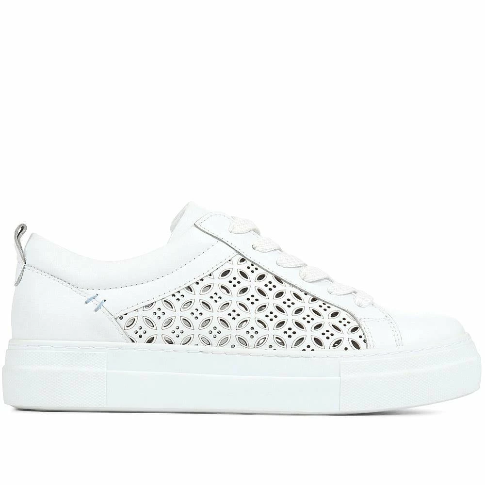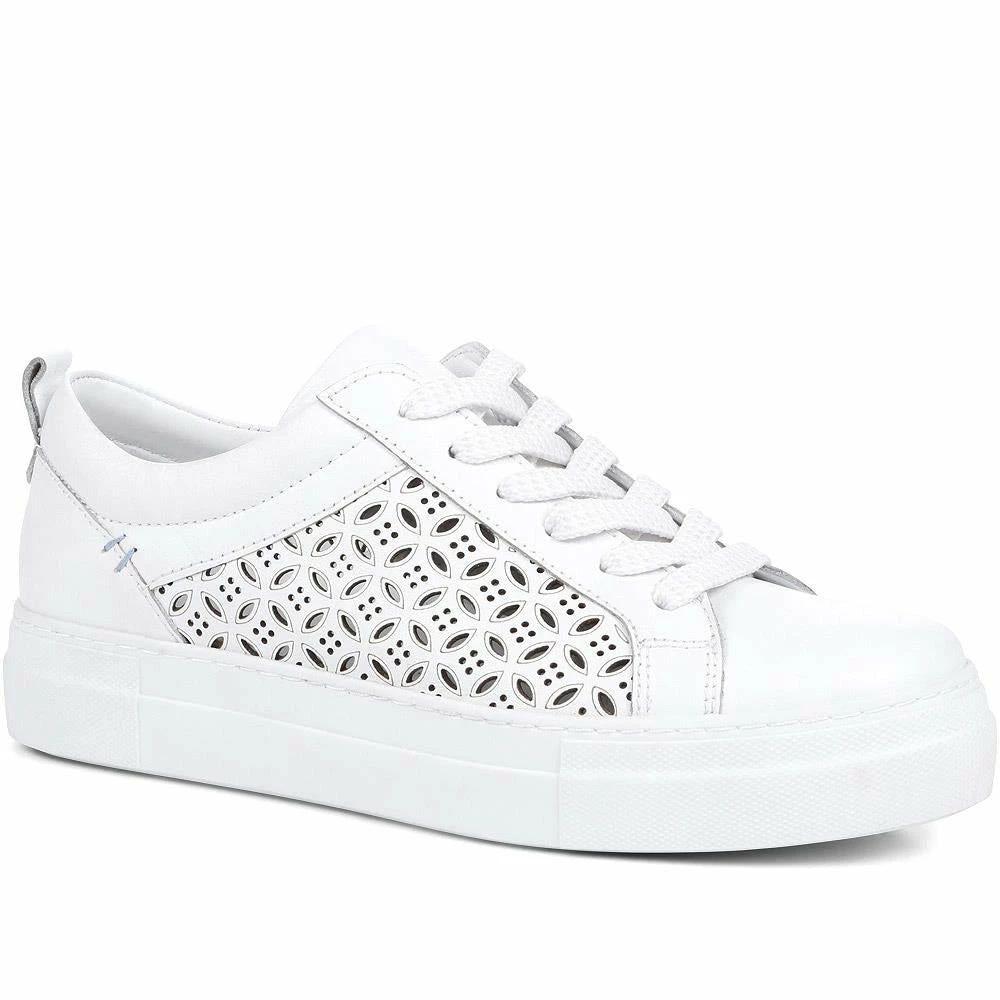 These chunky leather trainers are the perfect match for every outfit in your wardrobe. Made with high-quality leather, these trainers feature clever laser-cut panels that will keep feet feeling fresh through the warmer weather. With an on-trend platform sole and lace-up fastenings, these modern trainers feature a supportive cushioned insole. Combining classic style with functional comfort, these trainers are perfect for slipping on with your summer dresses, jeans, and smart trousers too.