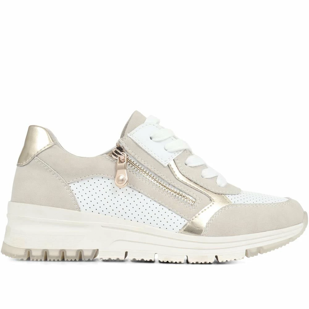 Combining modern style with cool comfort, these lace-up trainers will keep your looks on trend for the new season. Set on a lightweight wedge sole, these trainers promise to add a little boost to your height while keeping you comfortable. The soft comfort insole and padded linings surround your foot with luxurious cushioning, complete with a classic lace-up design and side zip fastening, so you can simply slip the trainers on and off.