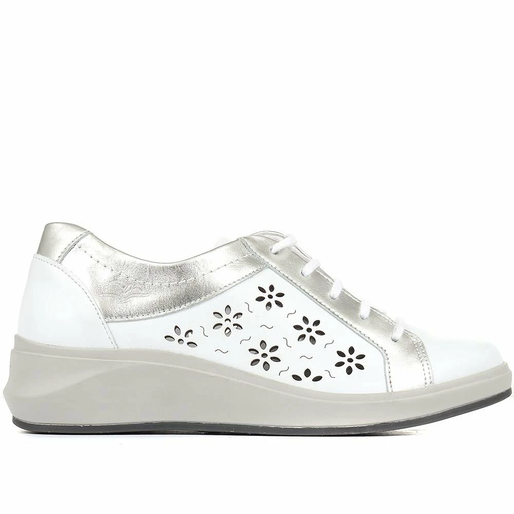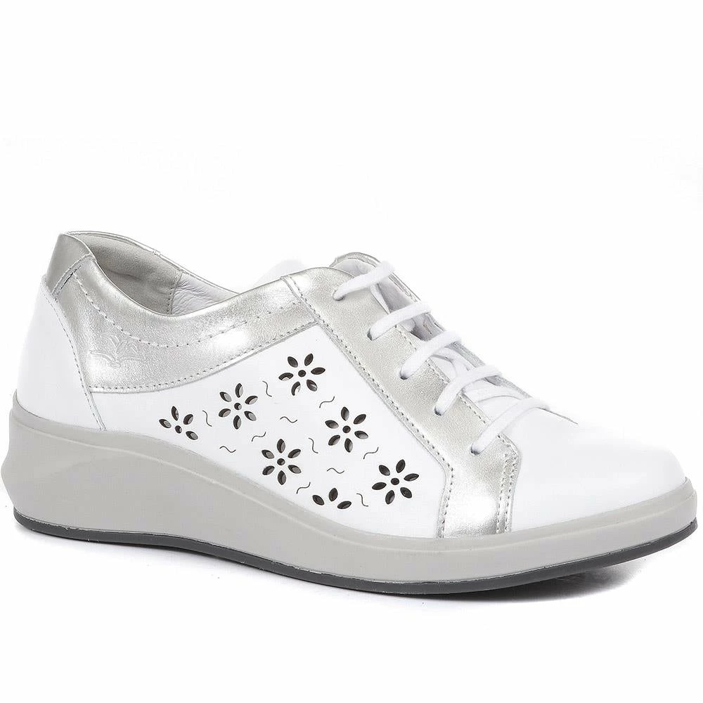 Made to maximise your comfort, these lace-up shoes are crafted with durable leather uppers and delicately detailed with floral cut outs across the quarters to create a fresh foot climate. The pure leather linings will surround and cradle the foot whilst the self-moulding leather footbed will provide personalised underfoot cushioning. Complete with a lightweight sole with raised heel and shock-absorbing properties.