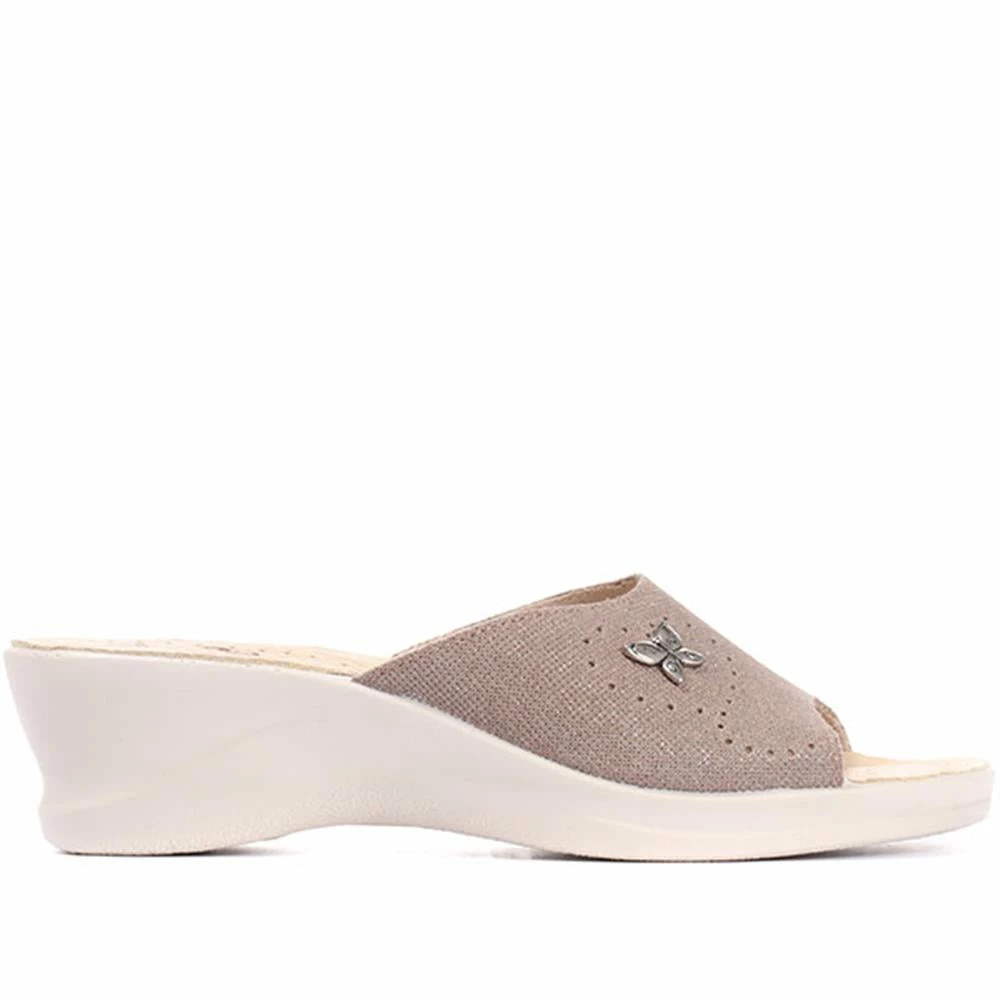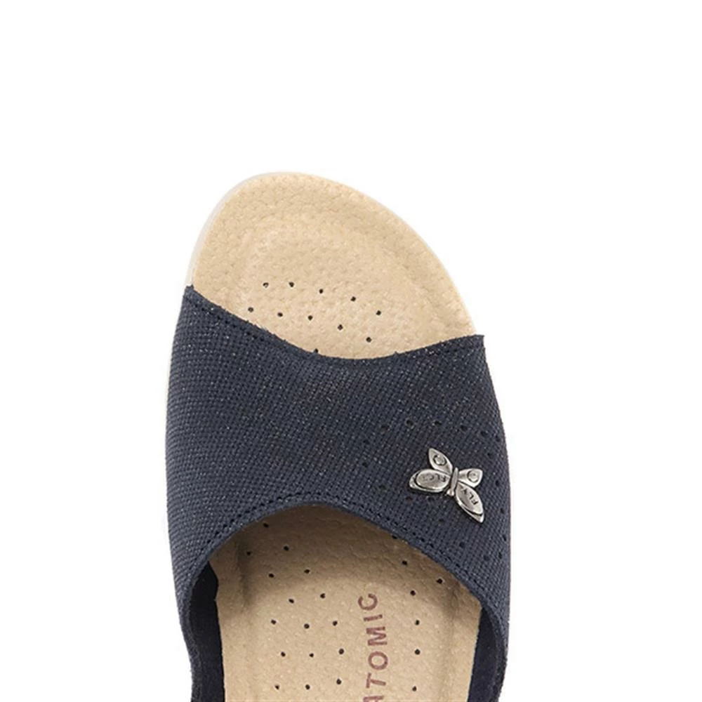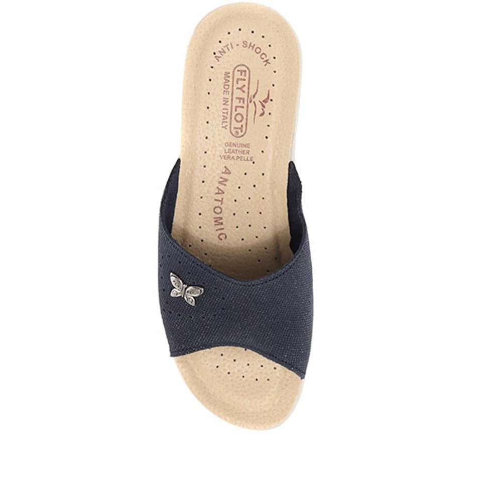 A bold look for your everyday wear, the mule sandals by Fly Flot are created with an easy slip-on style and embellished with a pretty butterfly button. Made in Italy with best selling anatomic comfort features, a lightweight sole and shock absorbing technology, stepping you through your everyday to the poolside.