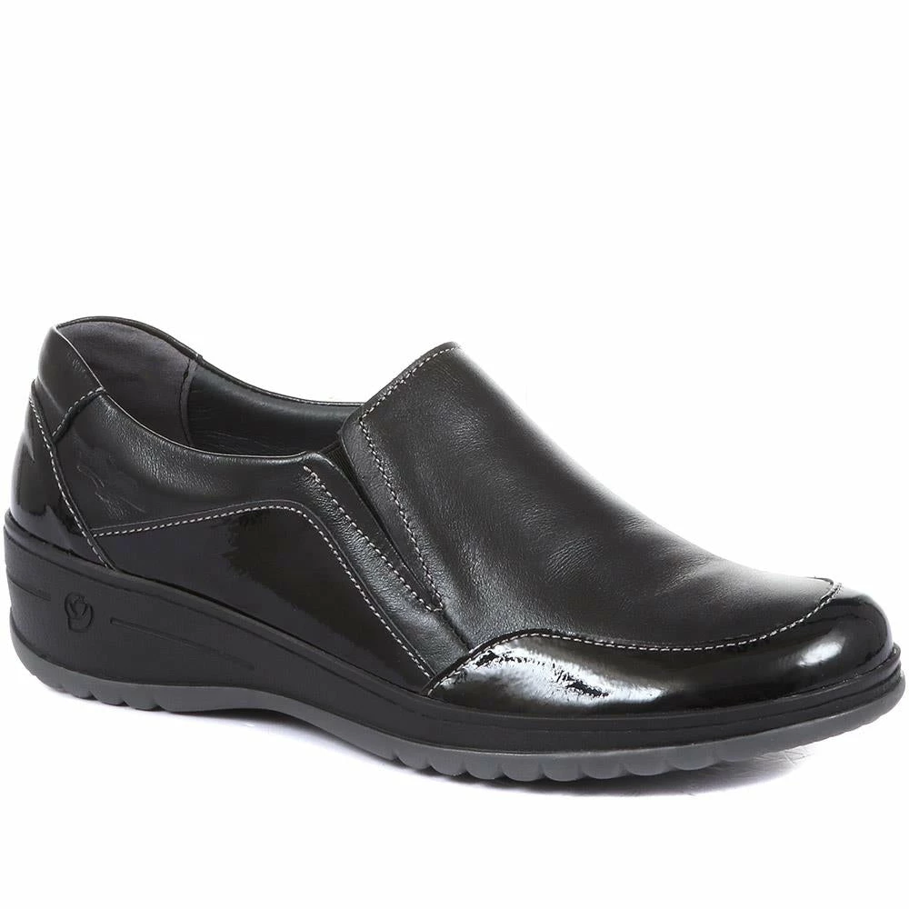 SKU: fly-flot-6614757081227 Categories: Casual, Formal & Dressy, Shoes, Slip On, Wide Fit, Women's Tags: Heel type:wedge heel, Material:leather, Occasion:day wear, Occasion:smart, Style_trouser shoe, Type:shoes, Upper_leather