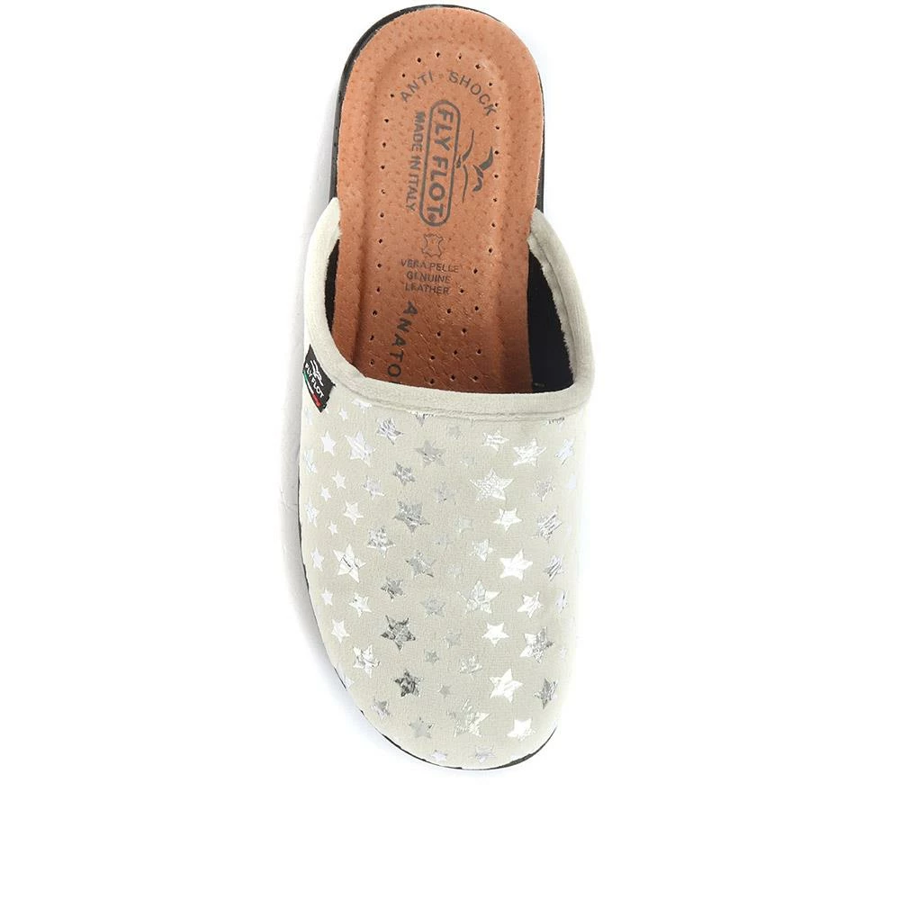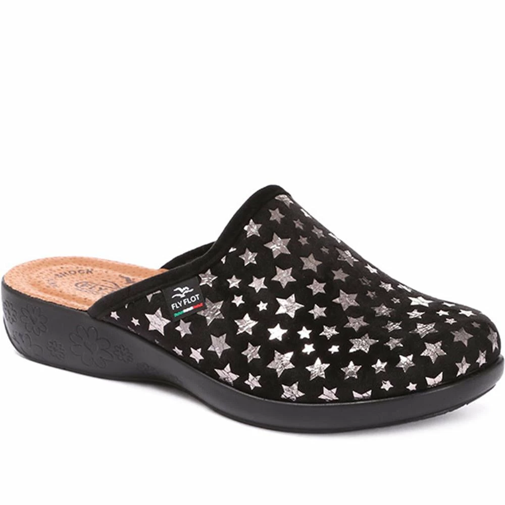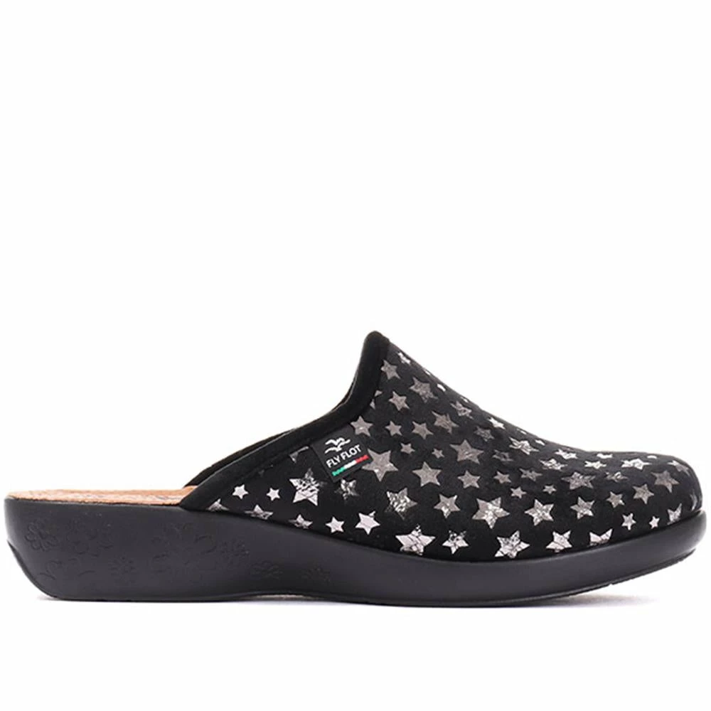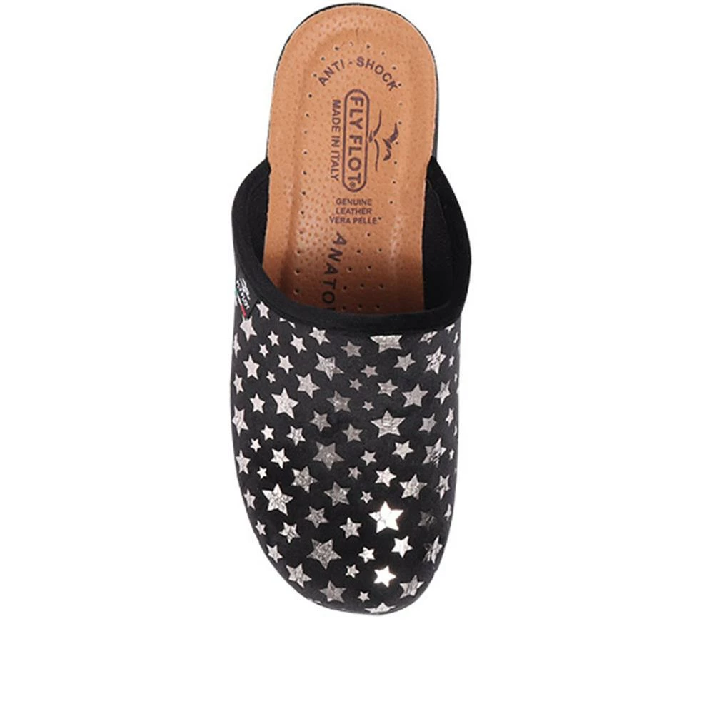 The shining star of comfort, Fly Flot’s slipper mule is made in Italy with amazing anatomic features including a self-moulding leather footbed and anti-shock technology. Styled with a super soft upper emblazoned with a metallic star print and lined with cushioned support, created with a simple slip-on design for super easy wear.