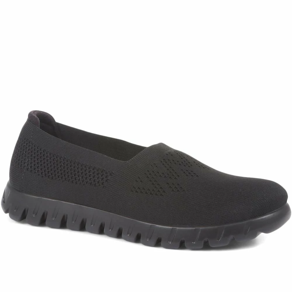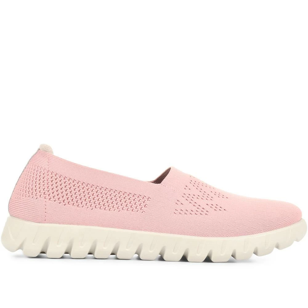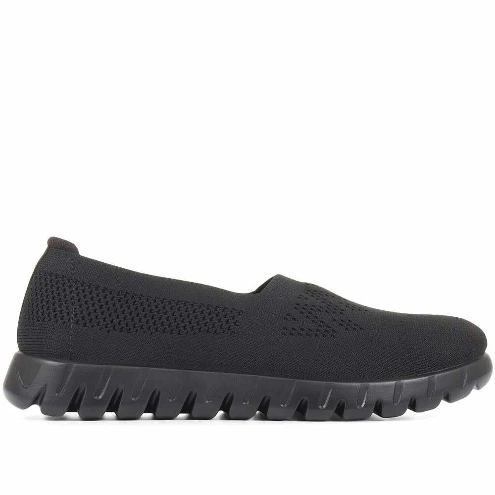 Made for wider feet, these easy slip-on trainers by Fly Flot feature a stretchy upper knit material on top of a sporty comfort sole. With a self-moulding insole these trainers are set to only get more comfortable with every wear. The anti-shock sole absorbs the impact of your steps to prevent foot and joint pain. Lightweight and flexible, these trainers are perfect for running errands.