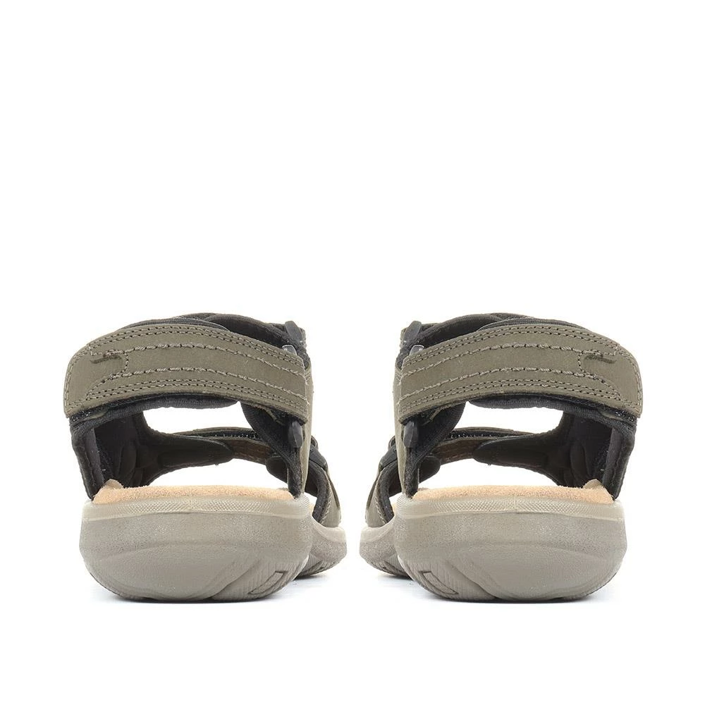 These fully adjustable men’s sandals feature three touch-fasten straps at the forefoot, ankle, and heel for a comfortable, secure fit. Based on a breathable comfort footbed with added arch support, these lightweight sandals will keep your feet feeling fresh all day long. Featuring a soft, flexible sole, these sandals won’t restrict your movement.