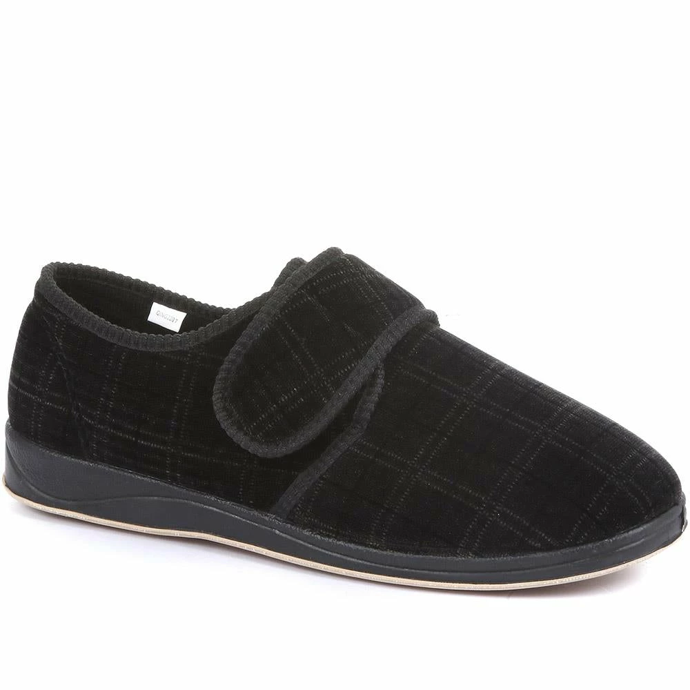 Experience total comfort in these wide fit slippers. Created from a soft check material, they boast memory foam insoles and touch-fastening straps for easy adjustability, these slippers have been created with a Permalose membrane that offers antibacterial protection to keep feet feeling refreshed and healthy, complete with a sturdy but flexible outsole that will help you to keep steady on your feet. We’ve even made these slippers machine washable, just pop them on a cool, gentle cycle and leave to air dry.