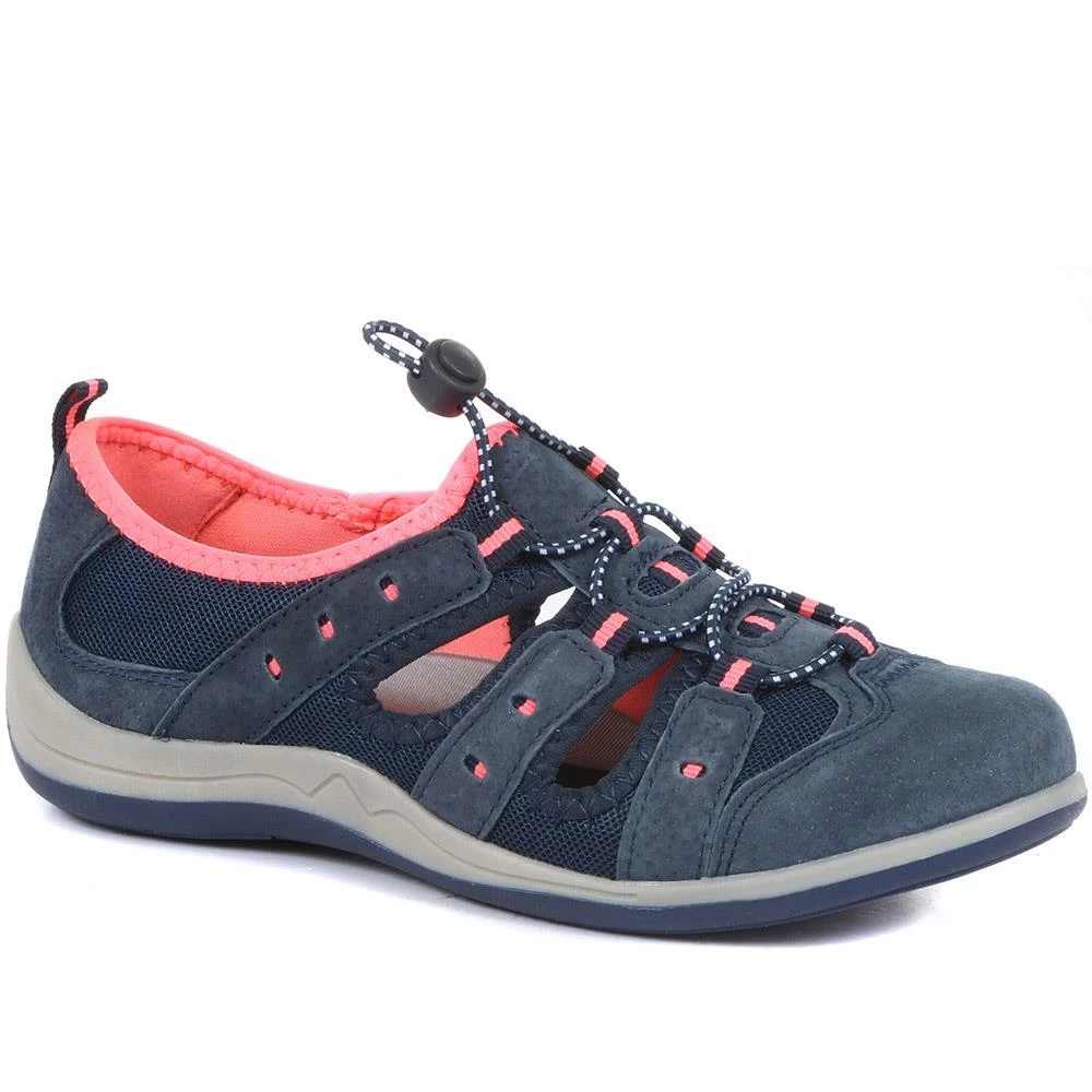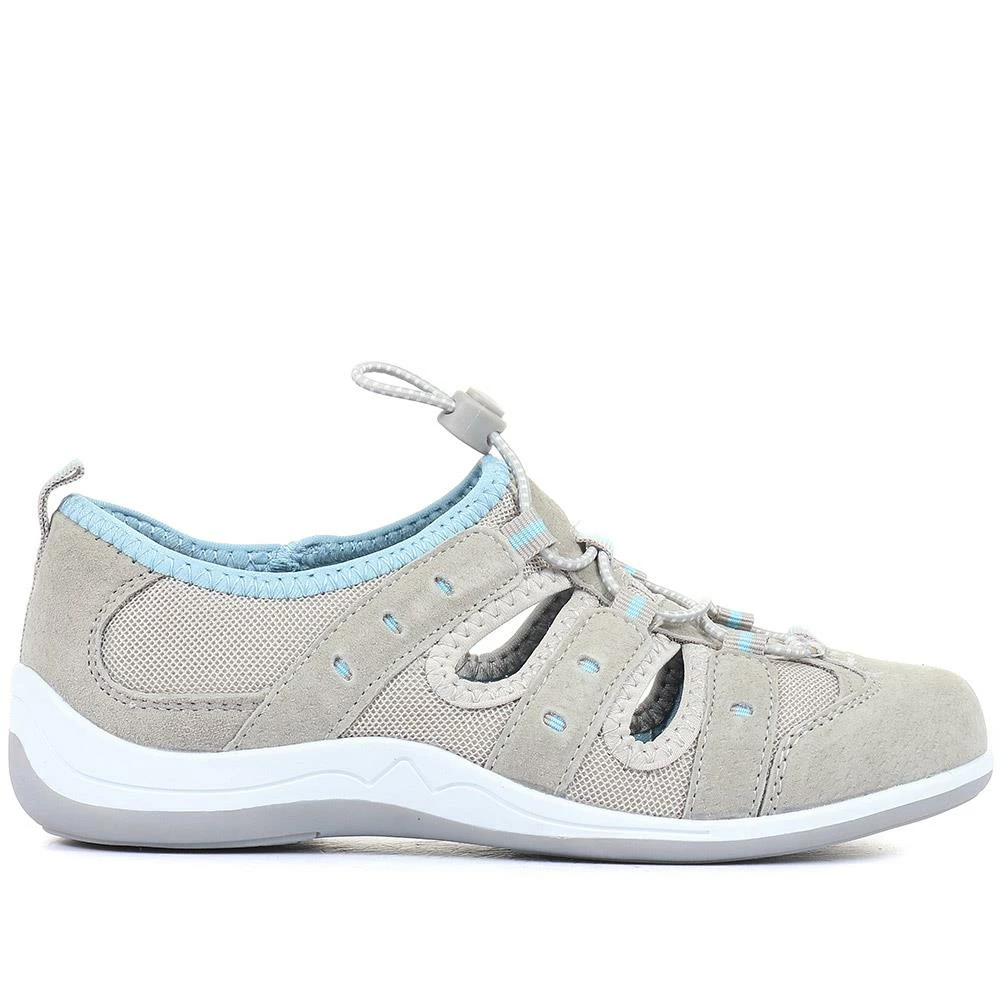 Sporty with a feminine twist, these ladies’ Sneaker shoes are crafted from panels of quality suede. Imagined in a low-cut silhouette the Sneakers feature dynamic cut-outs which create a striking silhouette and aid fresh foot feeling. Trimmed with contrasting details, the streamlined Sneaker shoe is finished with bungee lacing for a contemporary fastening.