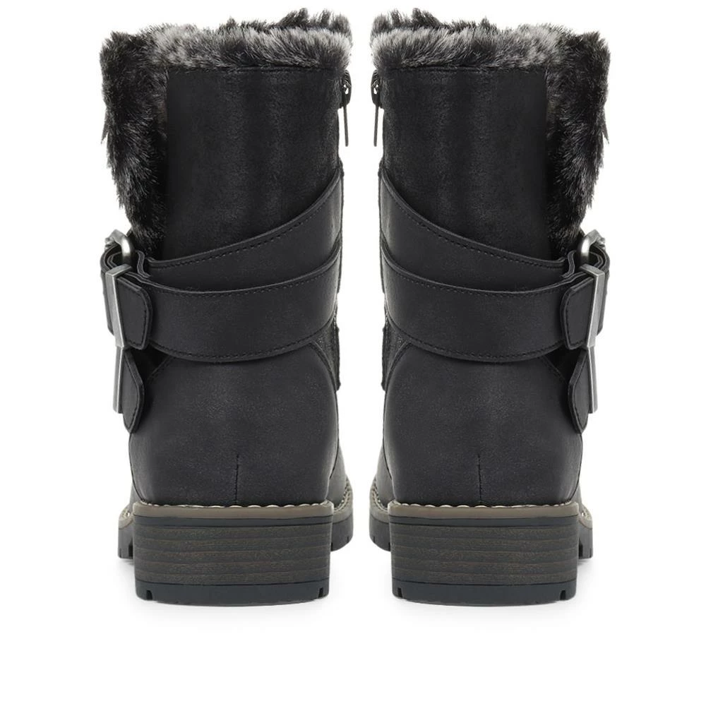 Take on the cold weather in style, the slouch ankle boots are designed with a duo of ankle straps with buckle fasten detailing. The boots sit on deep gripped sole with lightweight support, the insole gently cushions the foot and the super soft faux fur ankle cuff gives excellent insulation through the chilly days.