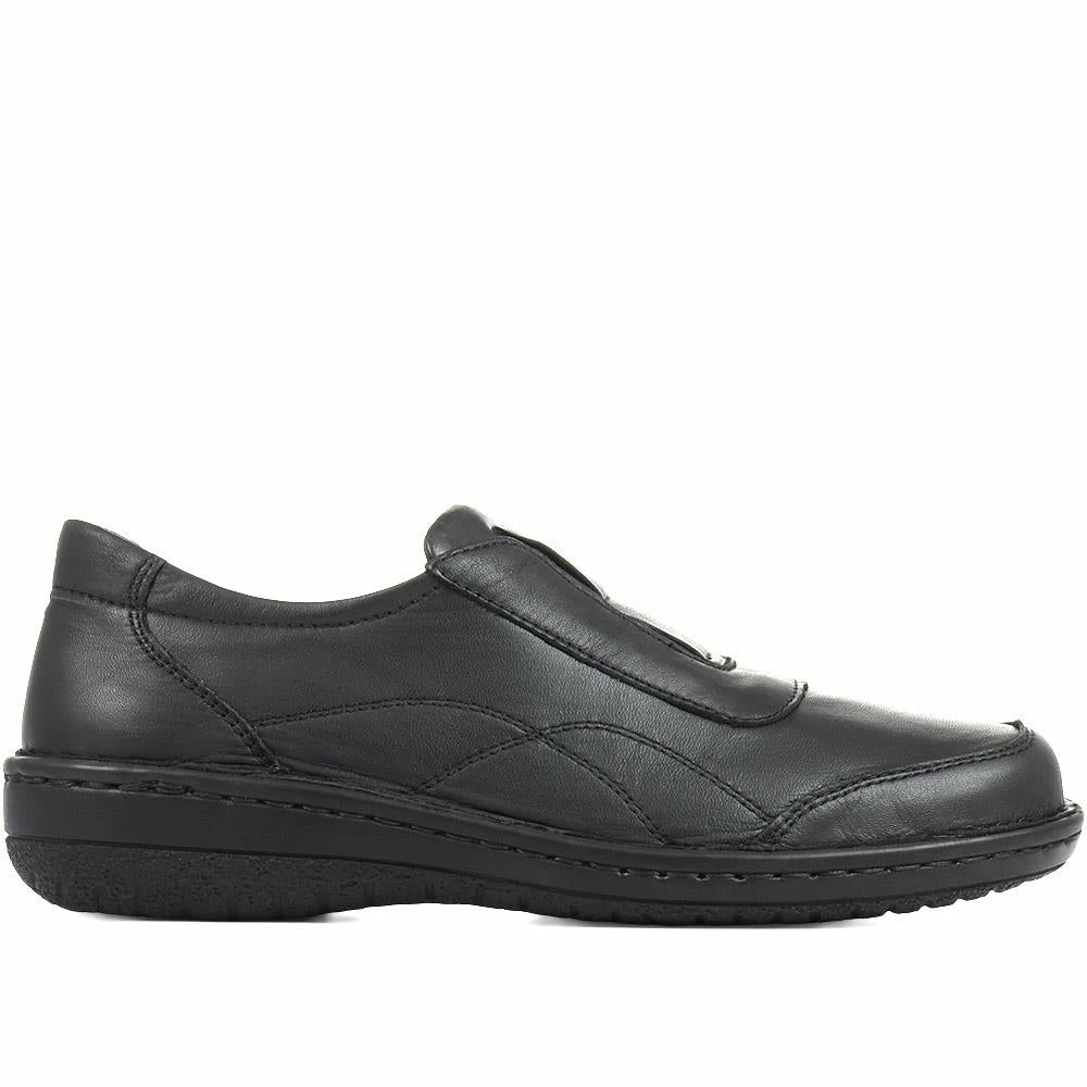 Perfect for work days, these leather shoes offer practical, comfortable style. Designed in a wide-fit, the contoured soles, cushioned footbeds, and barely-there heels lend overall support. Made without fussy fastenings, these lightweight shoes feature hidden elasticated inserts for a secure and flexible fit.