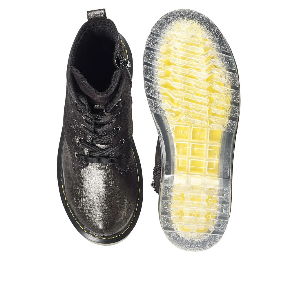 Thoroughly modern, these lace-up ankle boots sit on a chunky rubber sole with contrast stitched outsole for stand-out style. The boot showcases a metallic sheen, soft lining and handy side-zip fasten for instant wear.