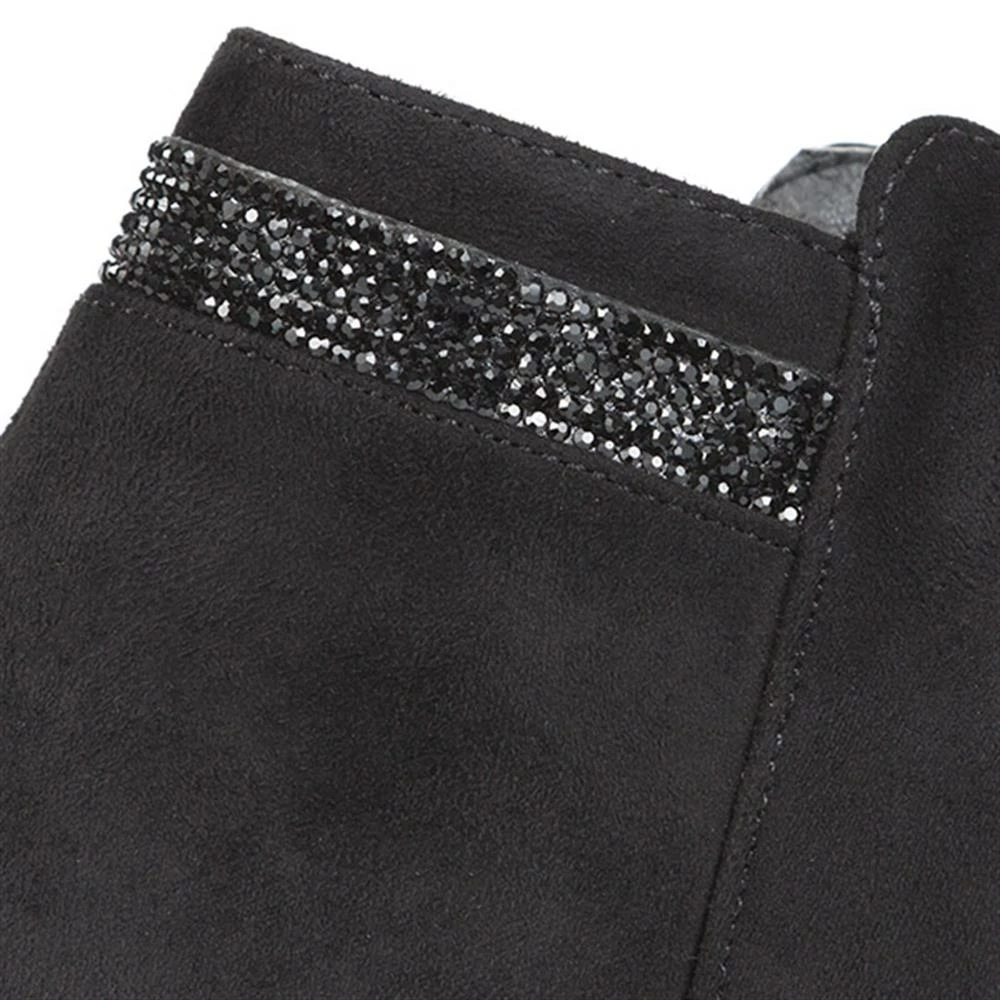 If you?re looking for a glamourous ankle boot then look no further! This pair have the understated faux-suede effect material, and also added diamantes to the cuff. Perfect for those seasonal parties.