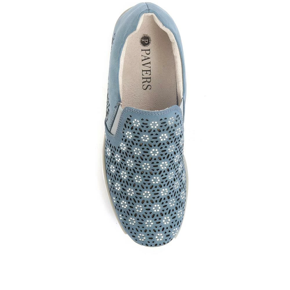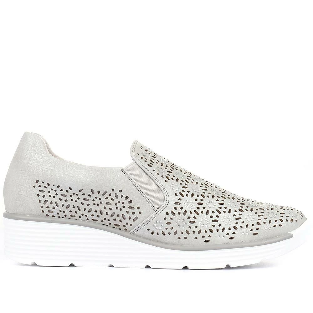 Chic elegance meets sporty style in our slip-on Sneaker shoes. Crafted in a pull-on silhouette, the Sneakers are crafted with deep elastic inserts for easy put on and removal. Layered upon a low wedge heel, the ladies Sneakers are intricately cut out in a delicate floral pattern, and are finished with subtle embellishment. Internally, the soft linings and cushioned insock create a cosy fit, whilst the cut-out detailing aids fresh foot feeling.