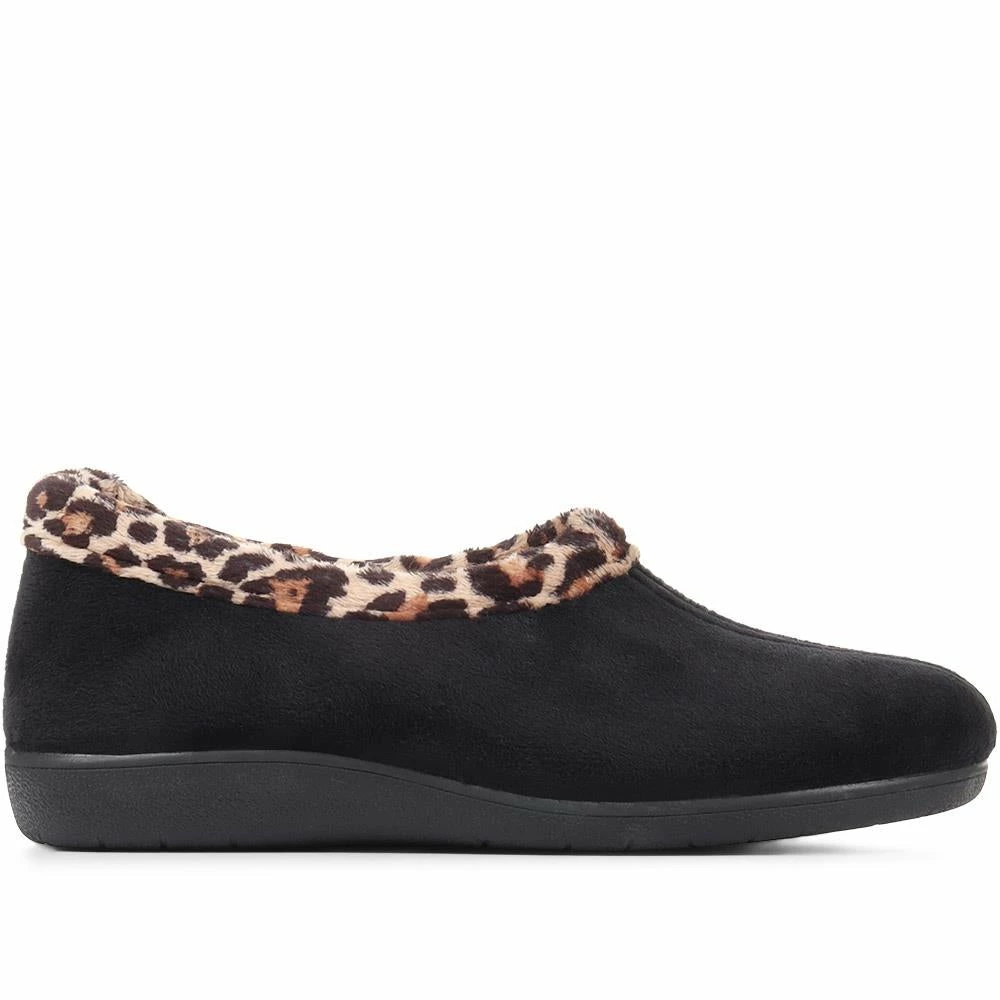 A comfort must-have, these full slippers will keep you warm throughout the colder seasons. Easily slipped on, this full slipper silhouette is crafted from soft textiles inside and out for all-encompassing comfort. The flexible outsole and cushioned insole provide support in every step even when you’re just pottering around the house. Signed-off with a leopard print cosy cuff.