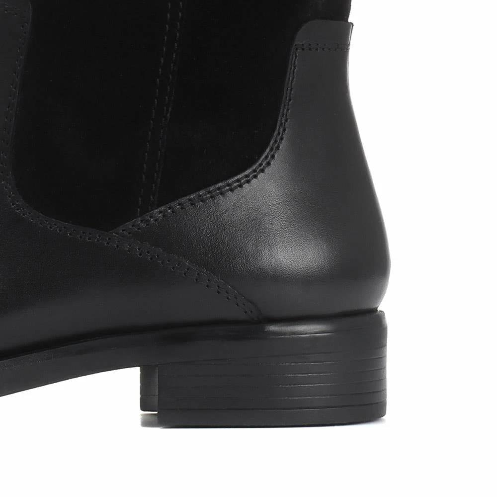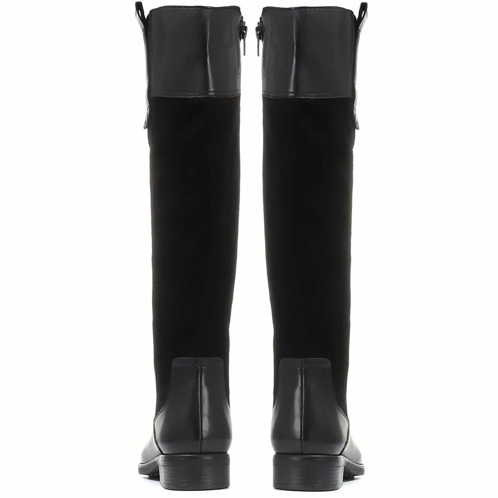 Versatile and refined, these long leather boots are the perfect choice for pulling together a casual autumnal look. Crafted with a mix of rich suede and contrasting smooth leather to reveal a classic rider silhouette, the boots feature three elastic vents for a tailored and flexible fit, the full length side zip fastening make the boots a dream to pull on, complete with soft faux fur linings and a cushioned footbed.