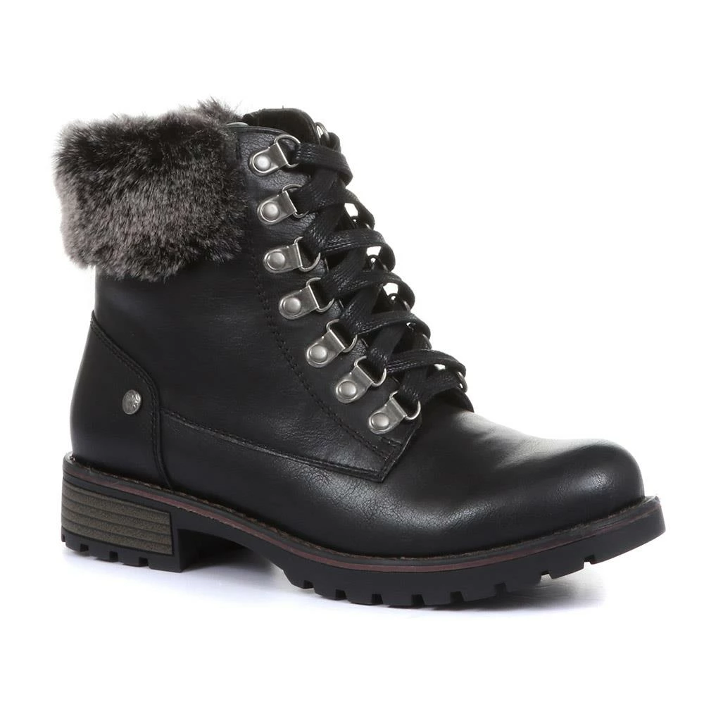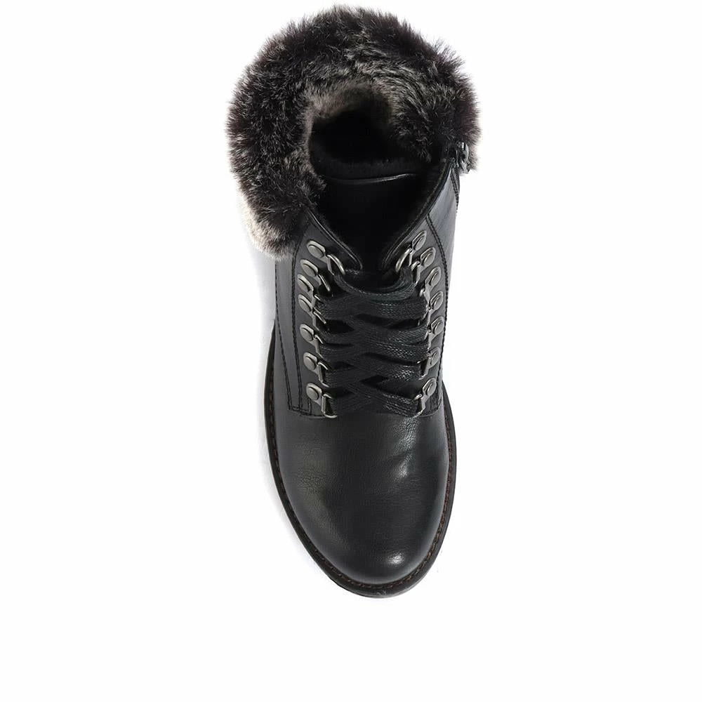 Women’s ankle boots that will take on stylish winter adventures with comfort and practicality. The lace-up ankle boots are styled with a fluffy faux fur trim around the ankle that will not only keep feet feeling warm but will add an easy-to-wear staple to your winter wardrobe, equipped with cosy textile linings, a lightweight sole and side zip fastening.
