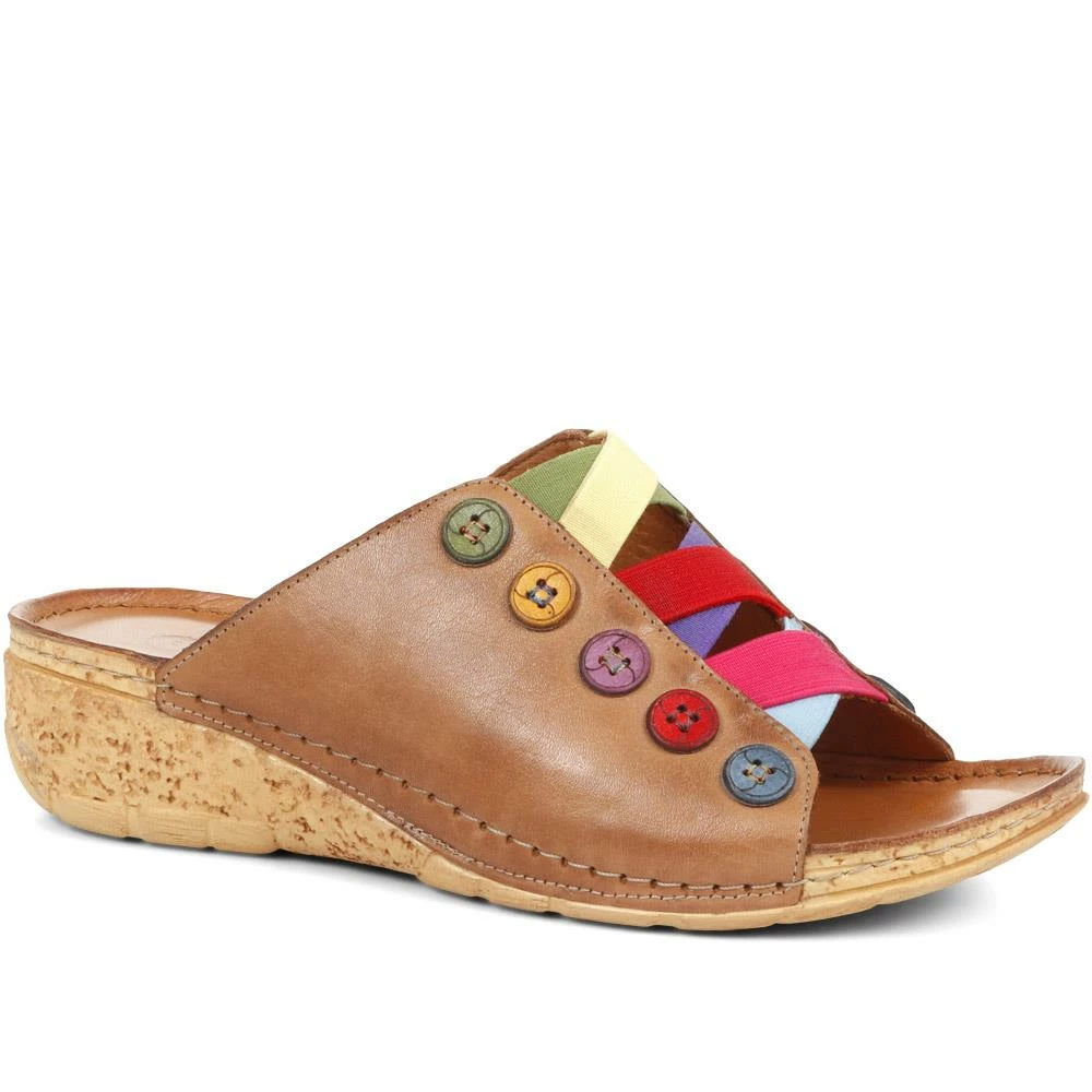 Add colourful style to your summer dressing, these wedge sandals are made with beautifully soft and supple leathers that will support your feet through the sunny months. We’ve designed these sandals with an easy slip-on design and delicately decorated with colourful crossing straps and button embellishments. The mid-wedge heel is deceptively light to ensure your step is steady and feeling comfortable.