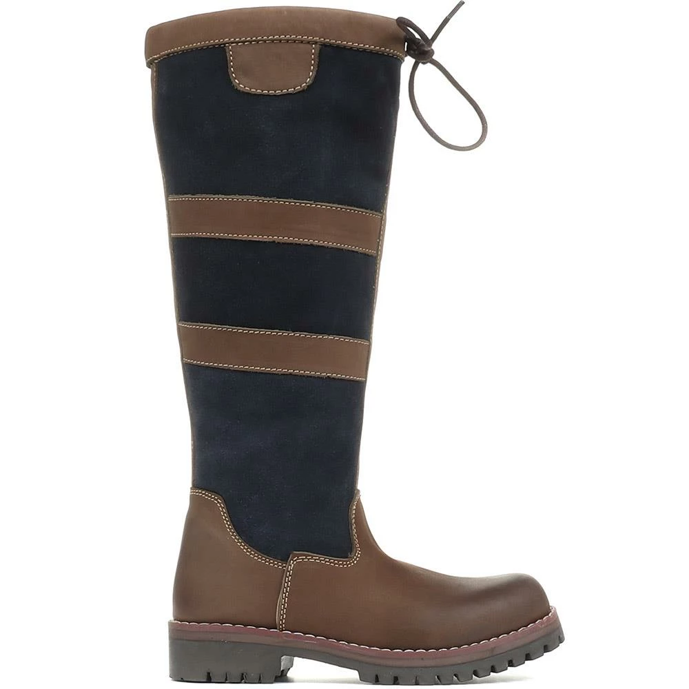 Perfect for ladies in the country, created from equestrian boot design it mixes both milled and nubuck leather for classic look. Built with a drawstring fasten around the top of the calf for the perfect fit, the leather long boots sit on a commando tread for added traction during long country strolls. The boots are not waterproof and will need treating as they are leather.