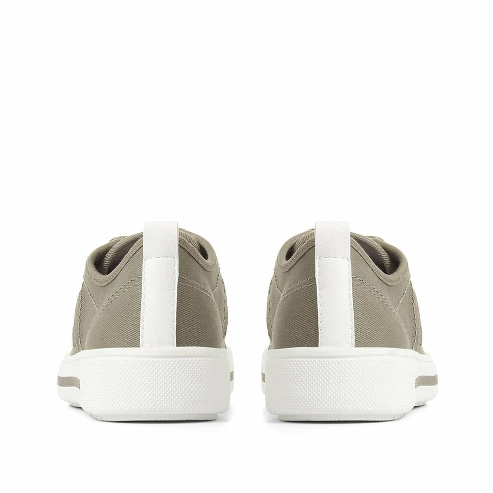 Master the art of ath-leisure style with our ladies Sneakers,made with a classic lace-up design these Sneakers will work with everything from your weekend jeans to your summer skirts. We’ve designed this pair with sustainability in mind because their linings are made with over 50% recycled PET plastic bottles. Plus the cushioned insole and a lightweight cupsole means you can step out in the sun and feel comfortable all day long. Recycled Plastic Linings: We’ve made this style with recycled plastic bottles, it’s a responsible and eco-friendly alternative to polyester but still holds the breathable super soft qualities that you’d expect. Made from over 50% recycled PET, we’re helping to save single use plastic from reaching landfill, so this pair make the perfect choice for ladies searching for sustainable shoes.