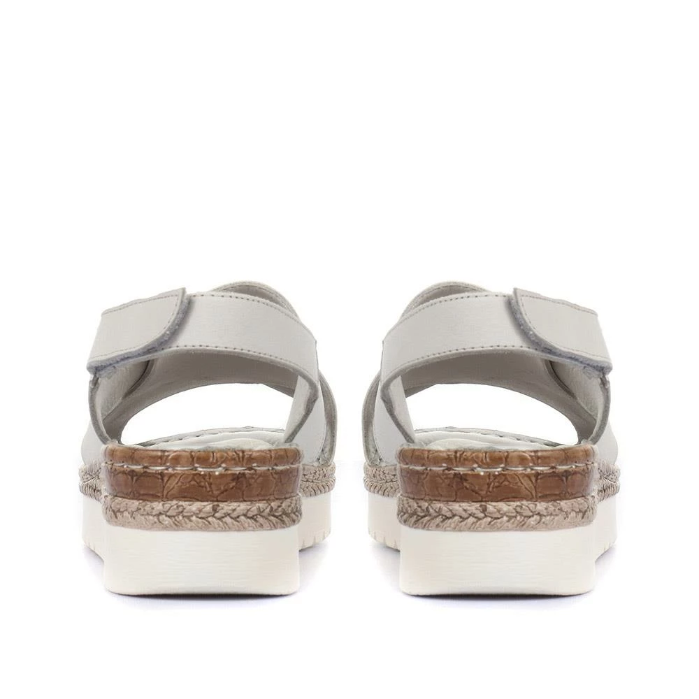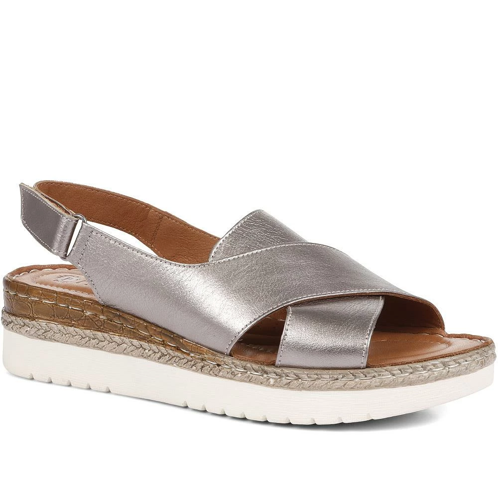 Looking for chic and easy summer style? You?ve found it here with our ladies? leather sandals. These leather sandals are layered across a low flatform for a subtle lift, whilst the soft leather uppers and internals create a comfortable fit. The cross-over silhouette creates a striking, yet supportive, look, whilst the slingback strap is touch fastening for an adjustable and flexible fit.
