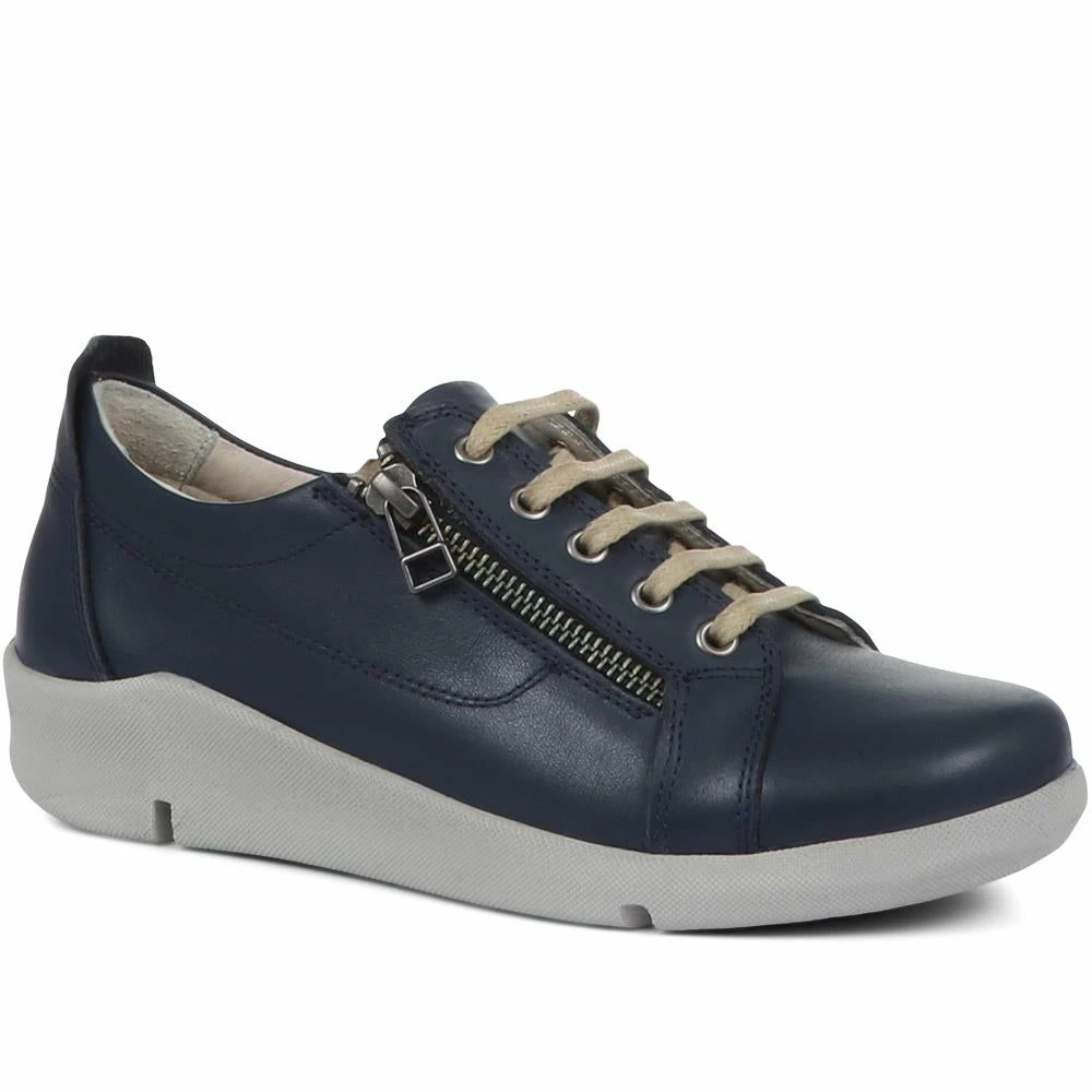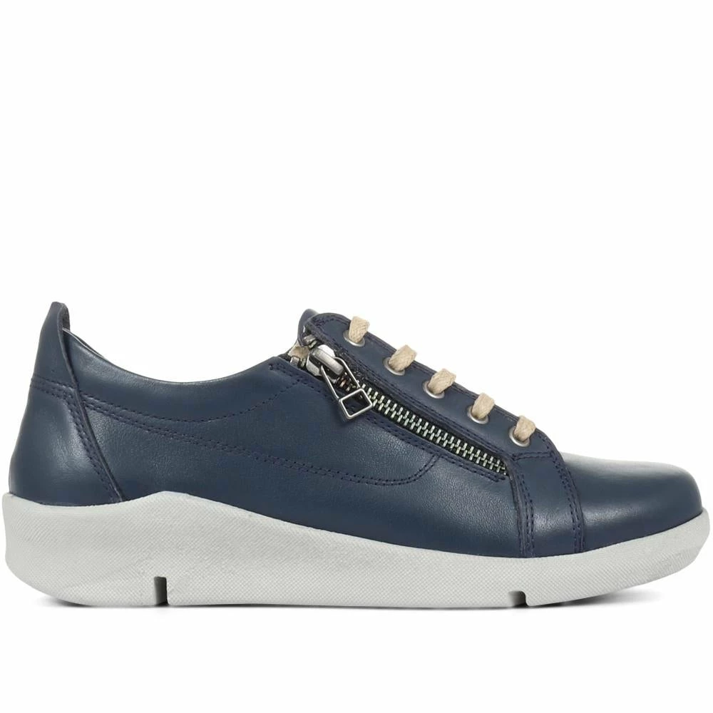 This effortlessly lightweight leather trainer is a chic and practical finishing touch to any casual outfit. The supple leather is interrupted only by a faux zip for an added touch of detail, whilst the internal removable insock gives a comfortable and adjustable fit.