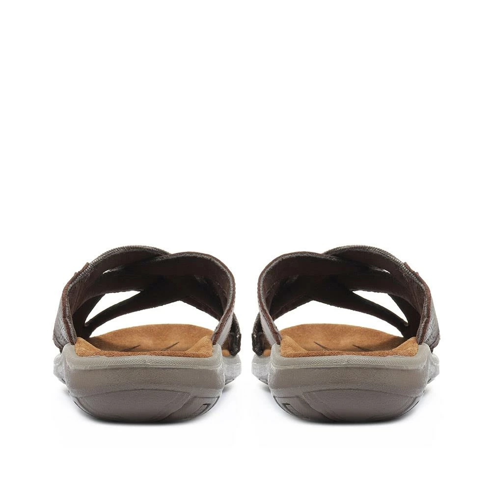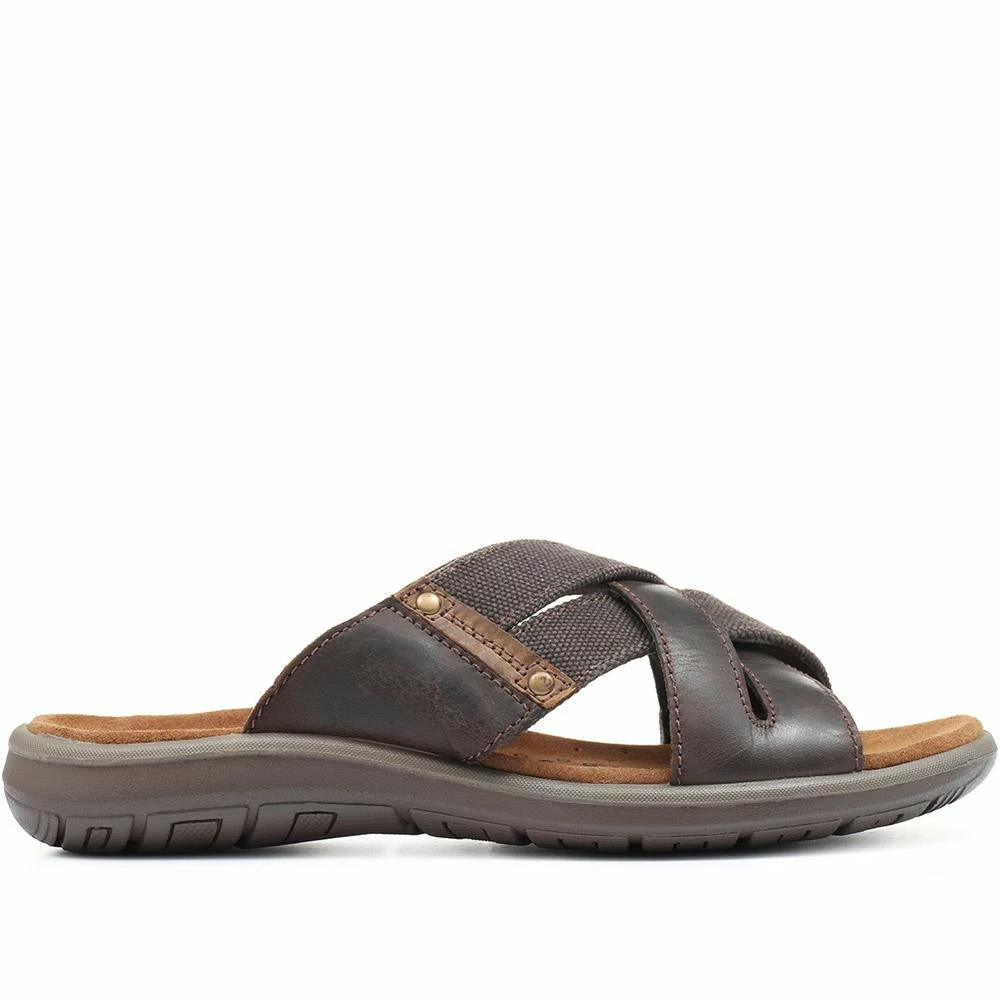 Ideal for relaxed sunny days, our leather mule sandals are styled with crossing leather straps to present an effortless slip on design. The contoured leather insole provides deep underfoot cushioning whilst the sturdy, flexible sole is complete with an inbuilt shock-absorber in the heel, adding a little extra practicality to your step.