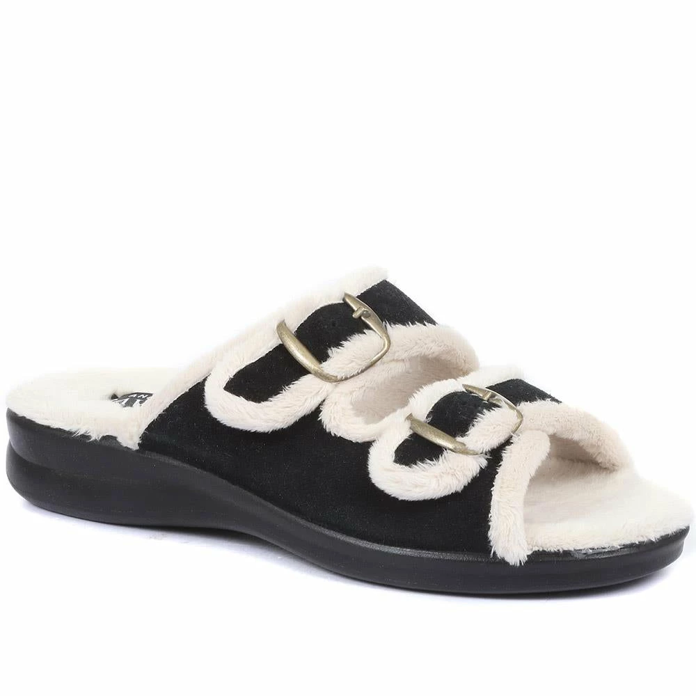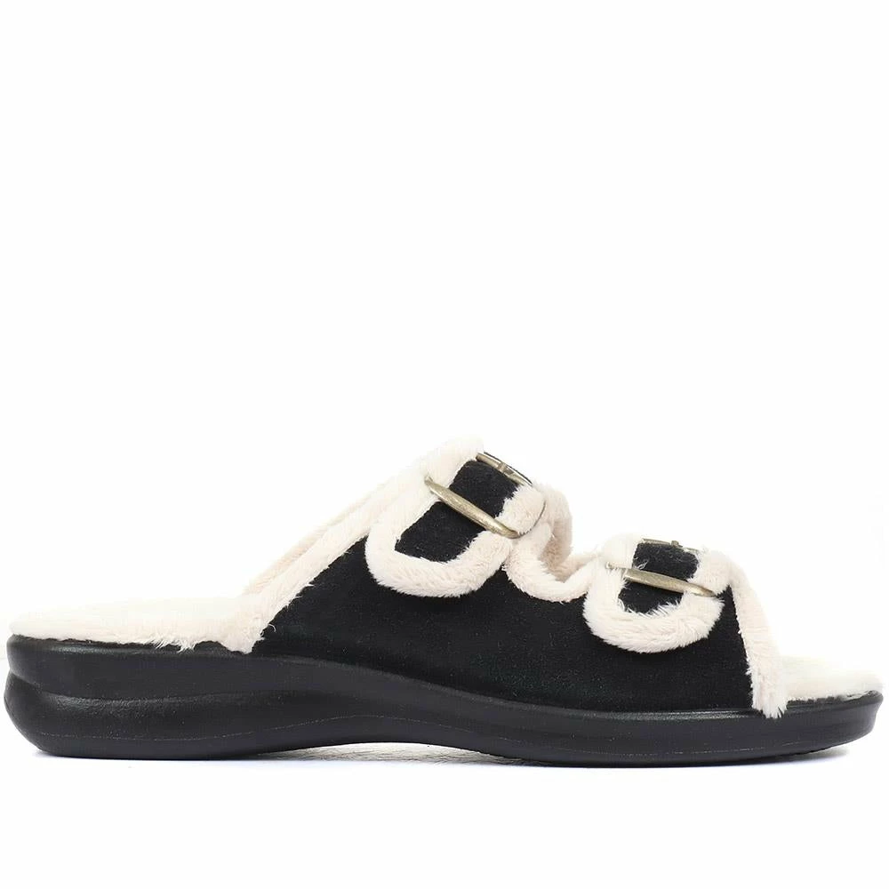 Satisfy your cravings for luxury comfort with our mule slippers, cut from high quality suede the slippers feature two buckle fastenings for an entirely personal fit. With soft fluffy linings and a plush cushioned insole, you can expect only the best cosy comfort.