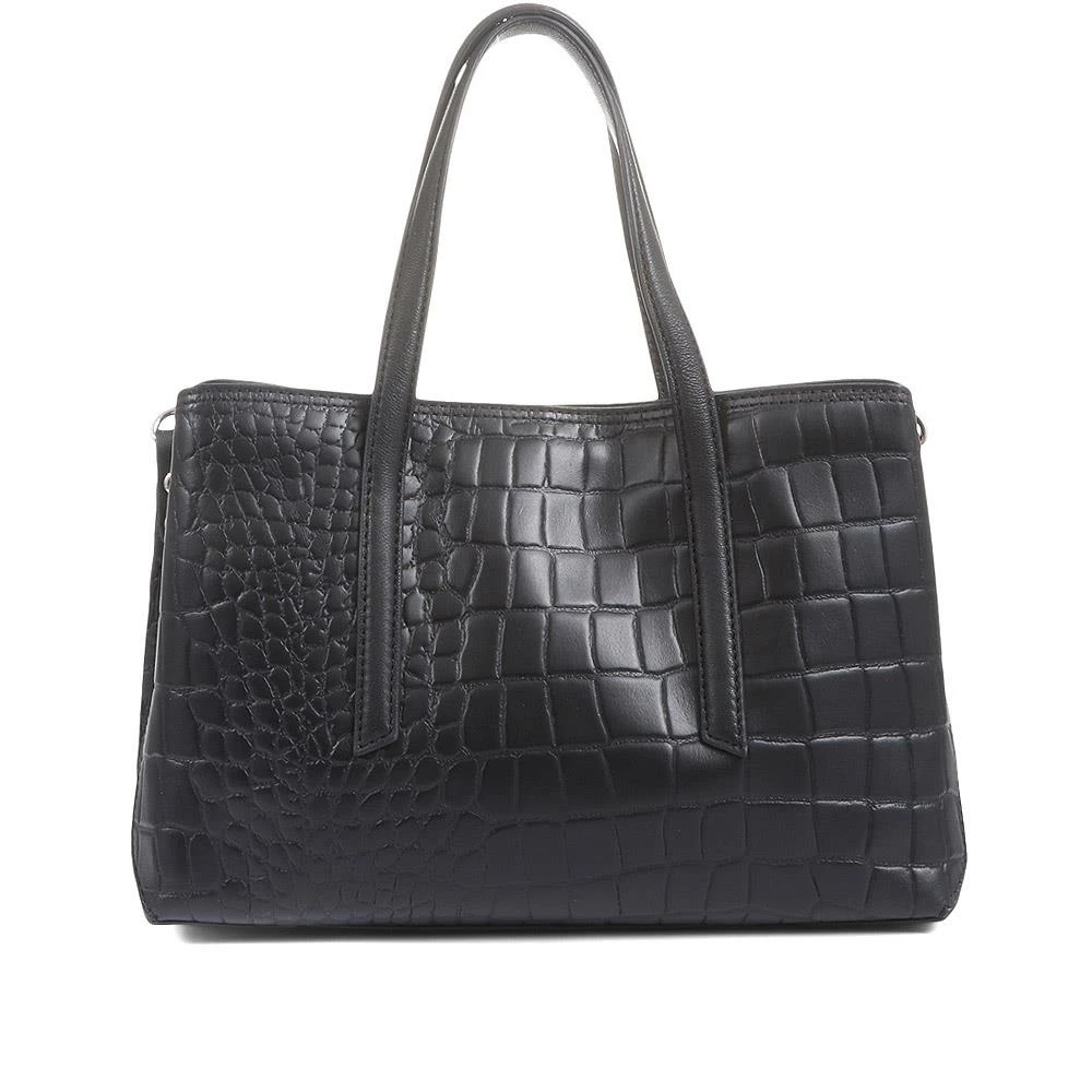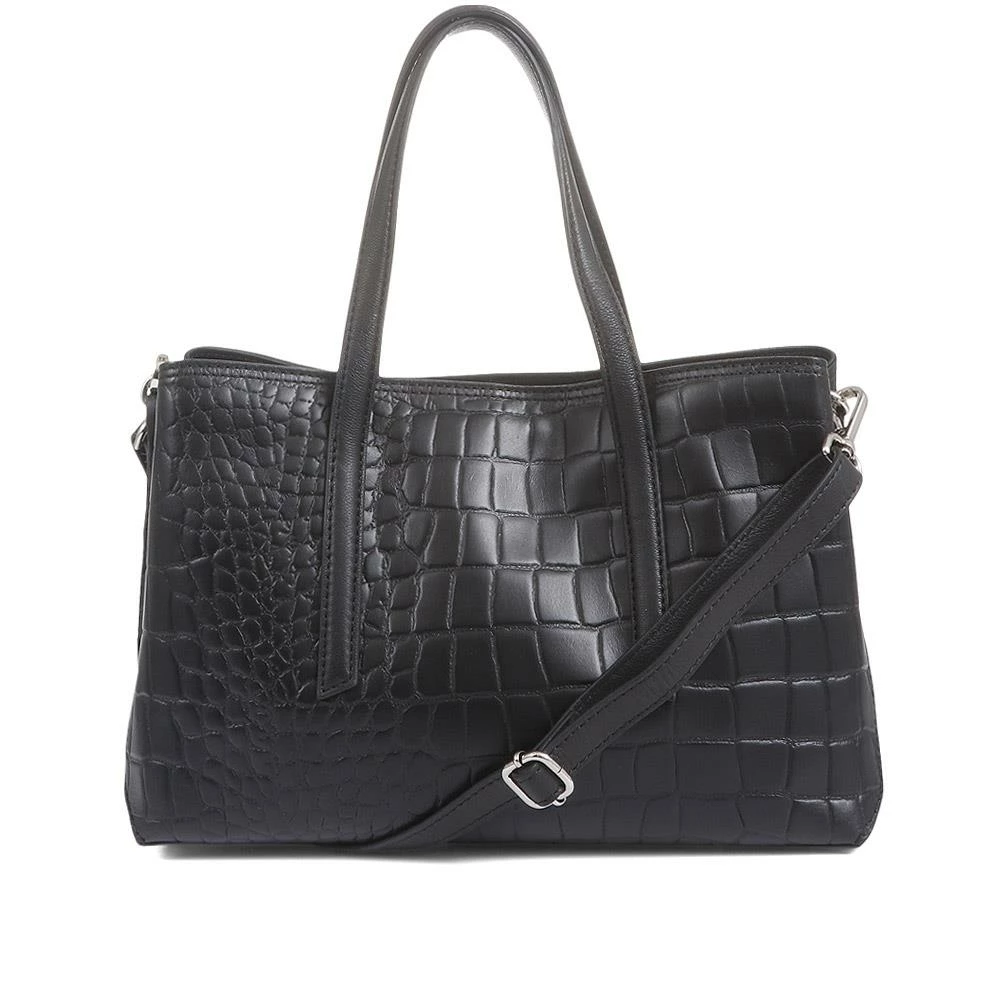Perfect for the lady that loves to carry everything, this leather tote bag features two spacious compartments that provide ample storage solutions for your everyday essentials. Crafted with glossy leather this bag features a zip close compartment to keep its content safe and secure. Complete with a detachable crossbody strap that’s ideal for when you’re on the go.