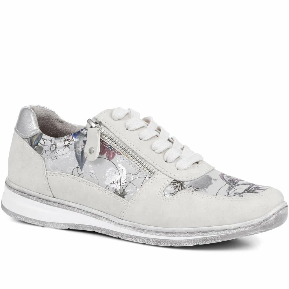 Spring into action in these lace-up trainers with floral panel design. Based on a lightweight air cushioned PU sole, these trainers offer cool comfort for the warmer weather. Great for everyday wear, the trainers feature classic lace-up fastenings and a handy zip for easy pull on.