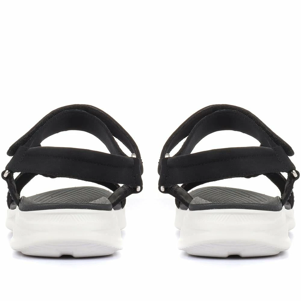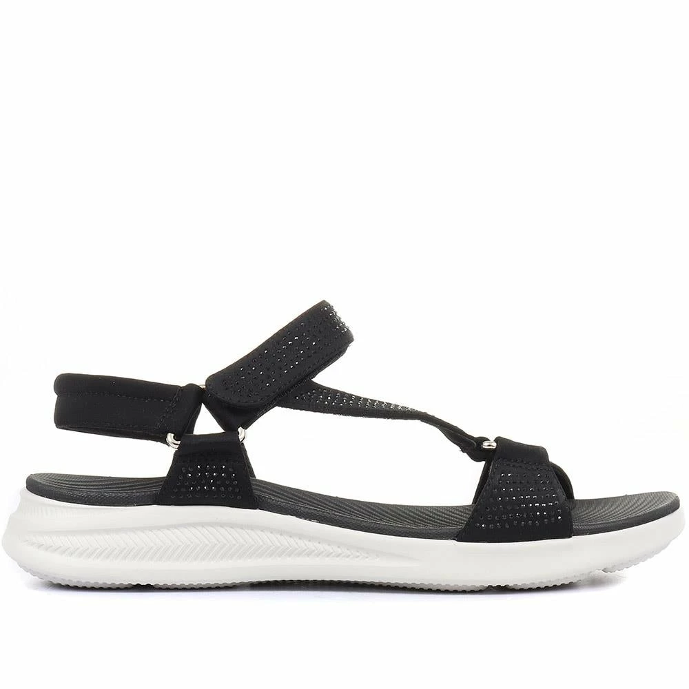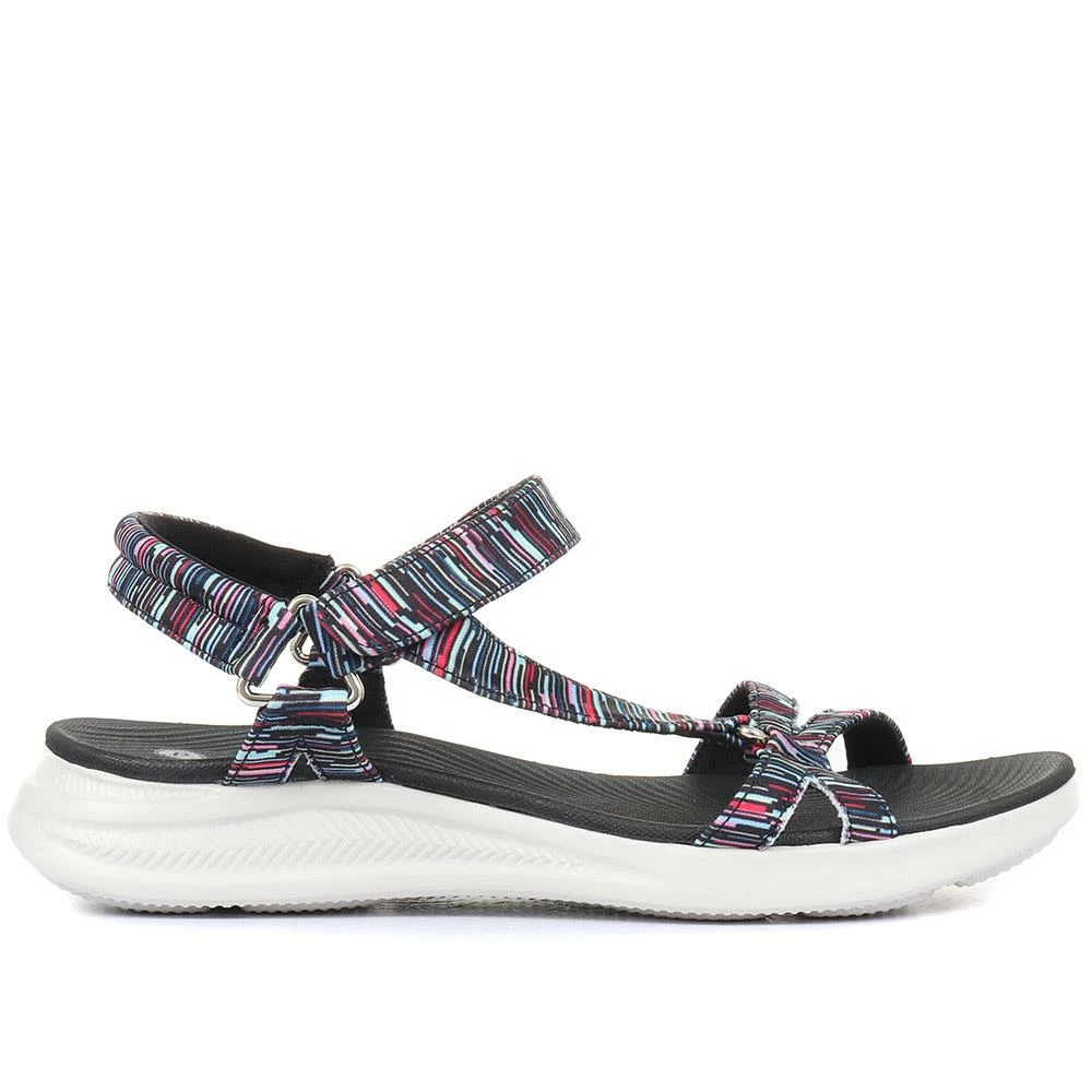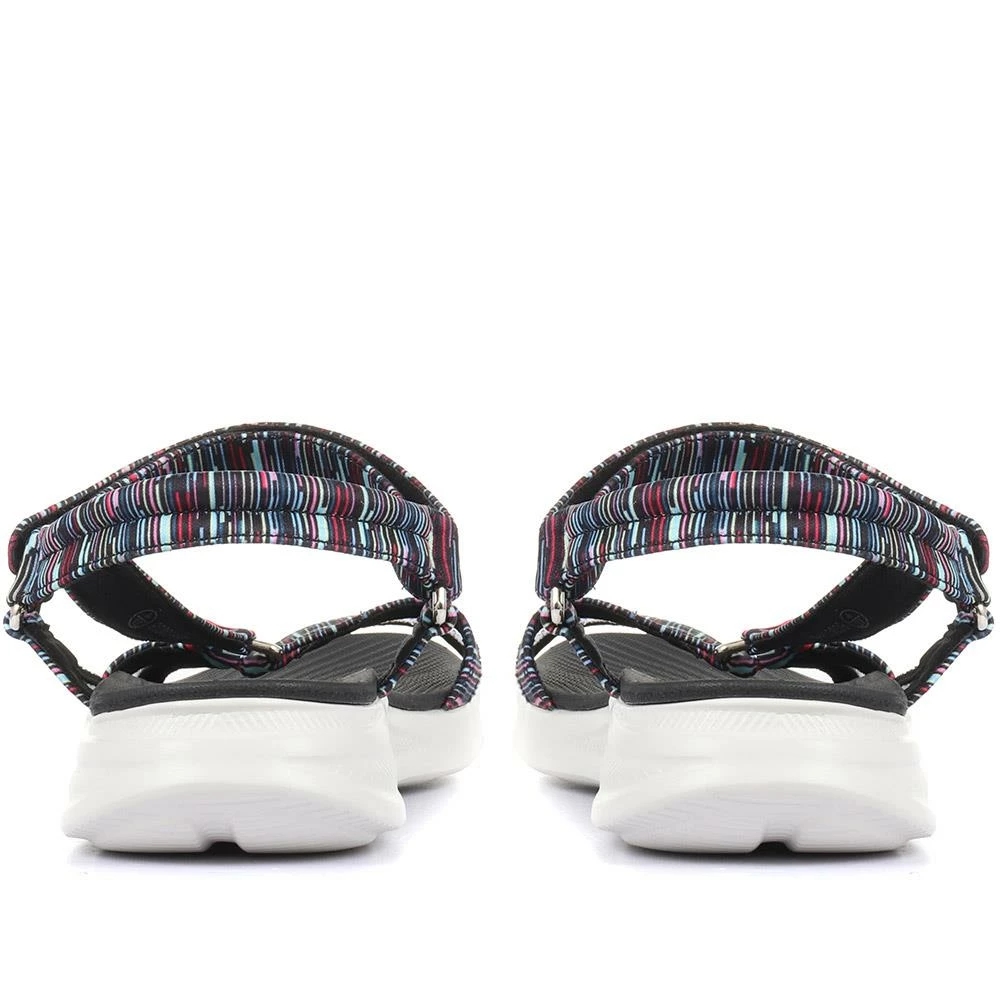 Keep feet cool and comfortable with our strappy sport sandals, built with an extra lightweight sole, touch-fastening ankle strap and a memory foam insole for responsive cushioning, they boast cool comfort and modern style. A perfect choice for active summer days.