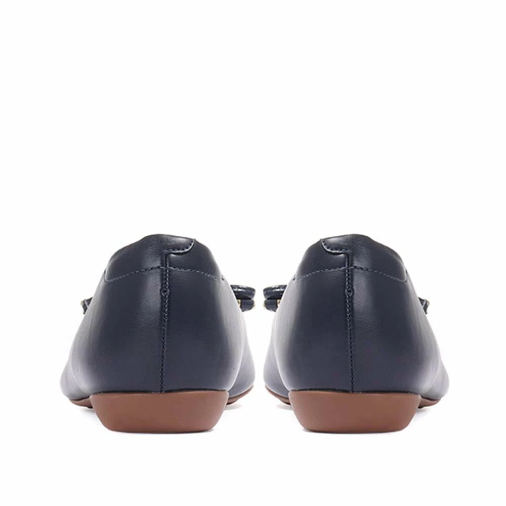 Smart styling meets innovative comfort, the flat ballerina pump is created with a traditional toe cap, bow detailing and square toe for sleek, sophisticated appeal. Fitted with a cushioned insole with contoured support you can ensure comfort stays with you all day long.
