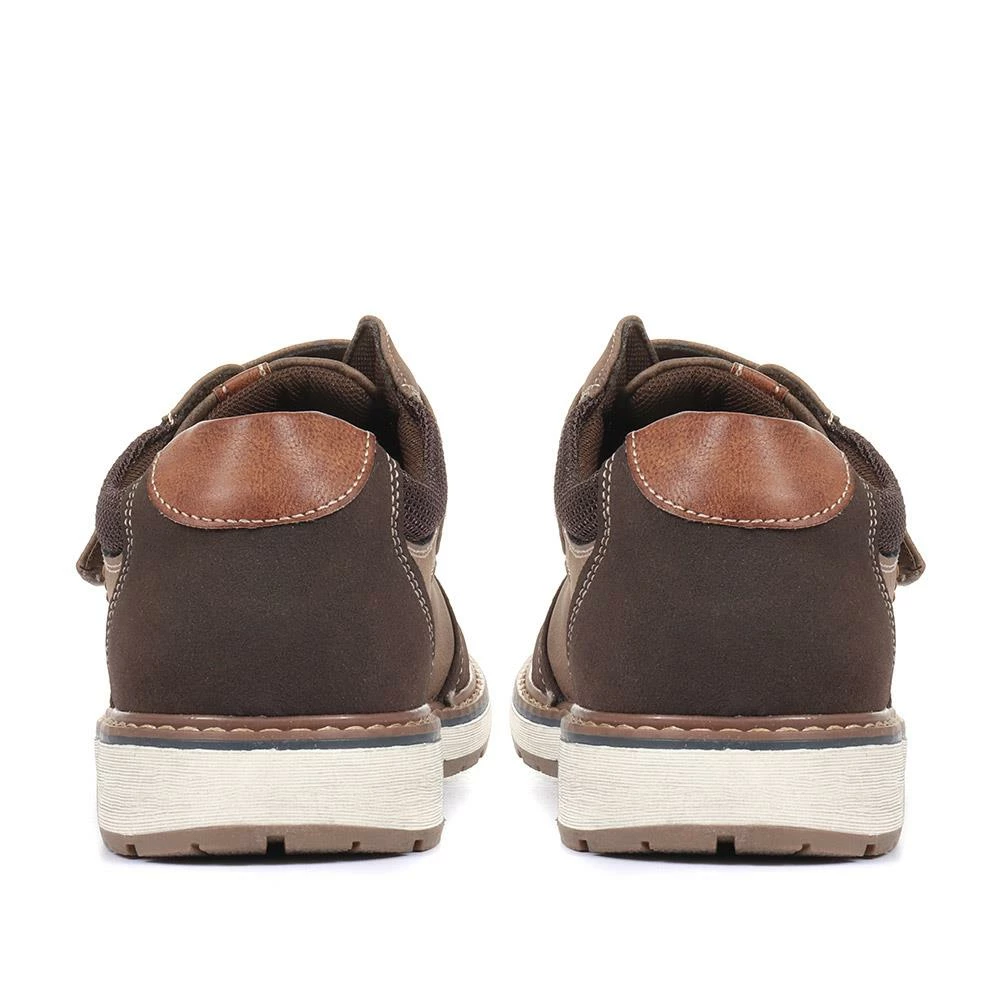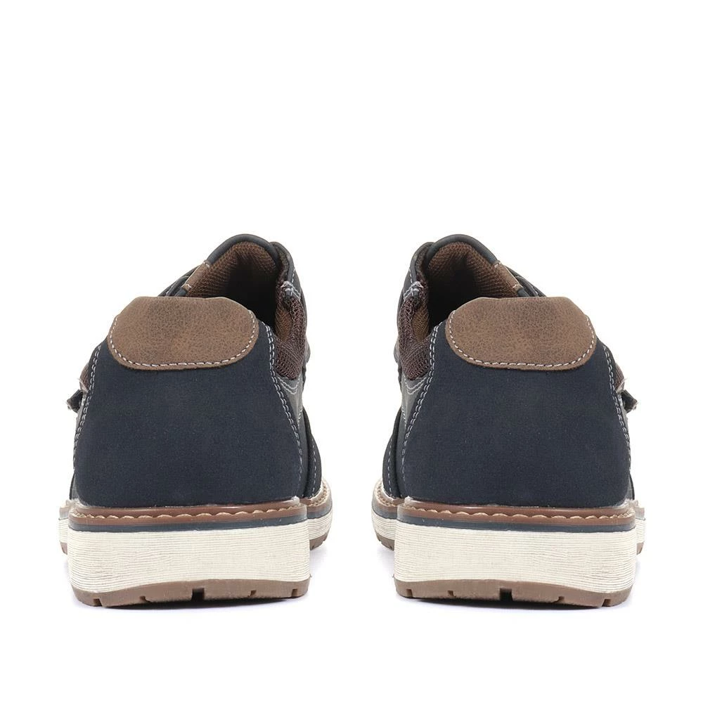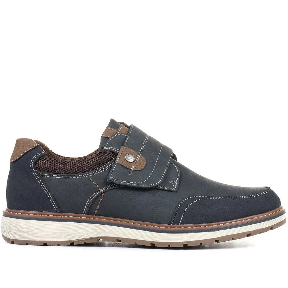 Crafted from faux leather panels in a tumbled effect, this gent?s shoe is styled in a casual silhouette, with tonally contrasting panelling. The padded ankle cuff is imagined in a cushioned textile for full foot support, whilst the one-point touch fastening closure offers an adjustable fit and a wide opening. Imagined in a soft square toe, the shoes are designed in a wider fit for a roomier effect.