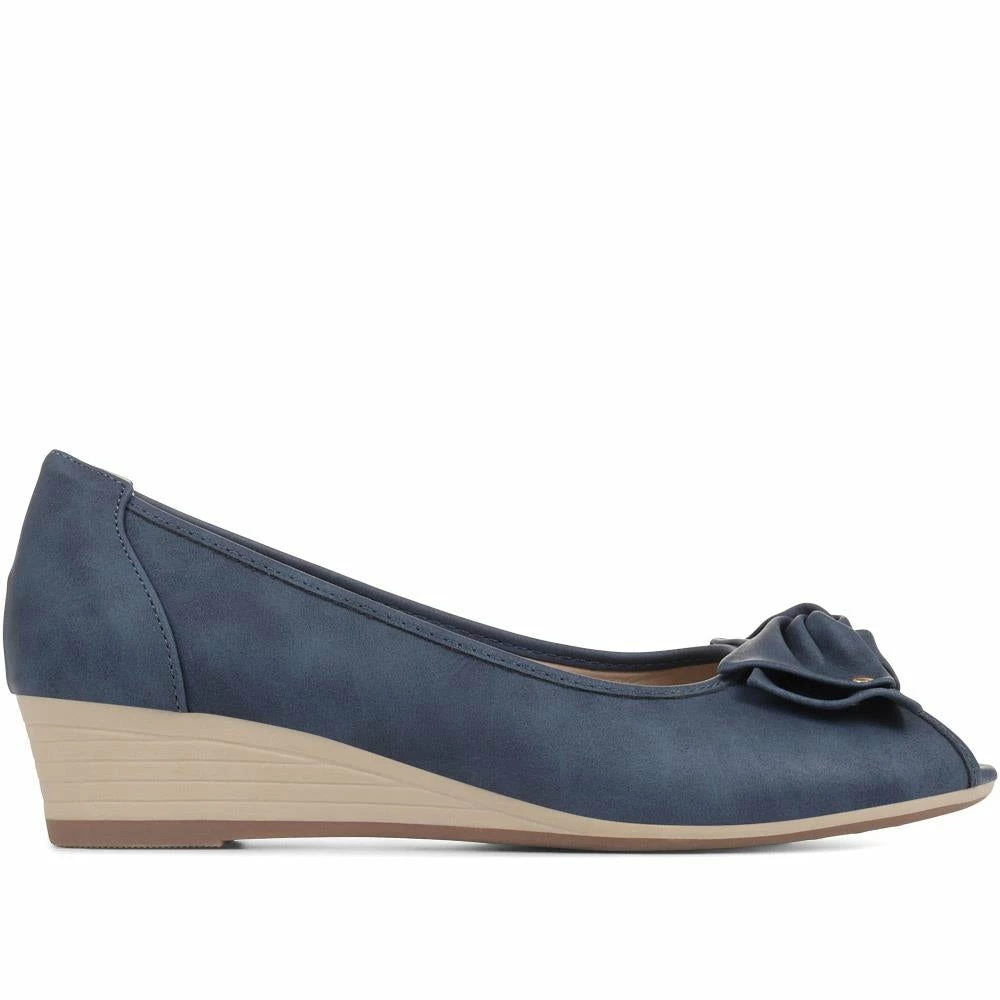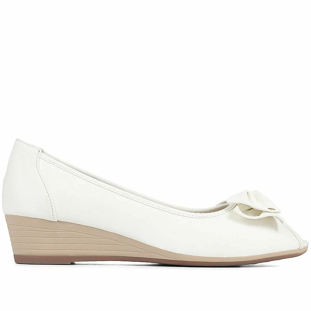 Classic and comfortable, these wedge pumps will add a glamorous twist to your every look. Styled with a classic peep-toe and low wedge heel, these pumps are perfect for sunny days plus the cushioned insole will keep feet feeling comfortable. Wear these peep-toe wedges with your cropped jeans or summer dresses for smart occasions.