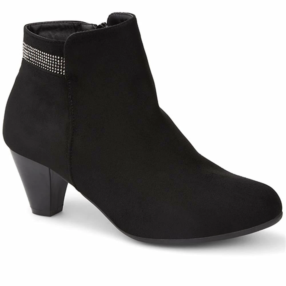 Offering a simple but chic look, the suedette ladies boots have a versatile design, accentuated by the delicate diamante detailing. Crafted with a sleek suedette and resting on a sculptured heel, fasten the boot with the fuss-free side zip for instant glam.