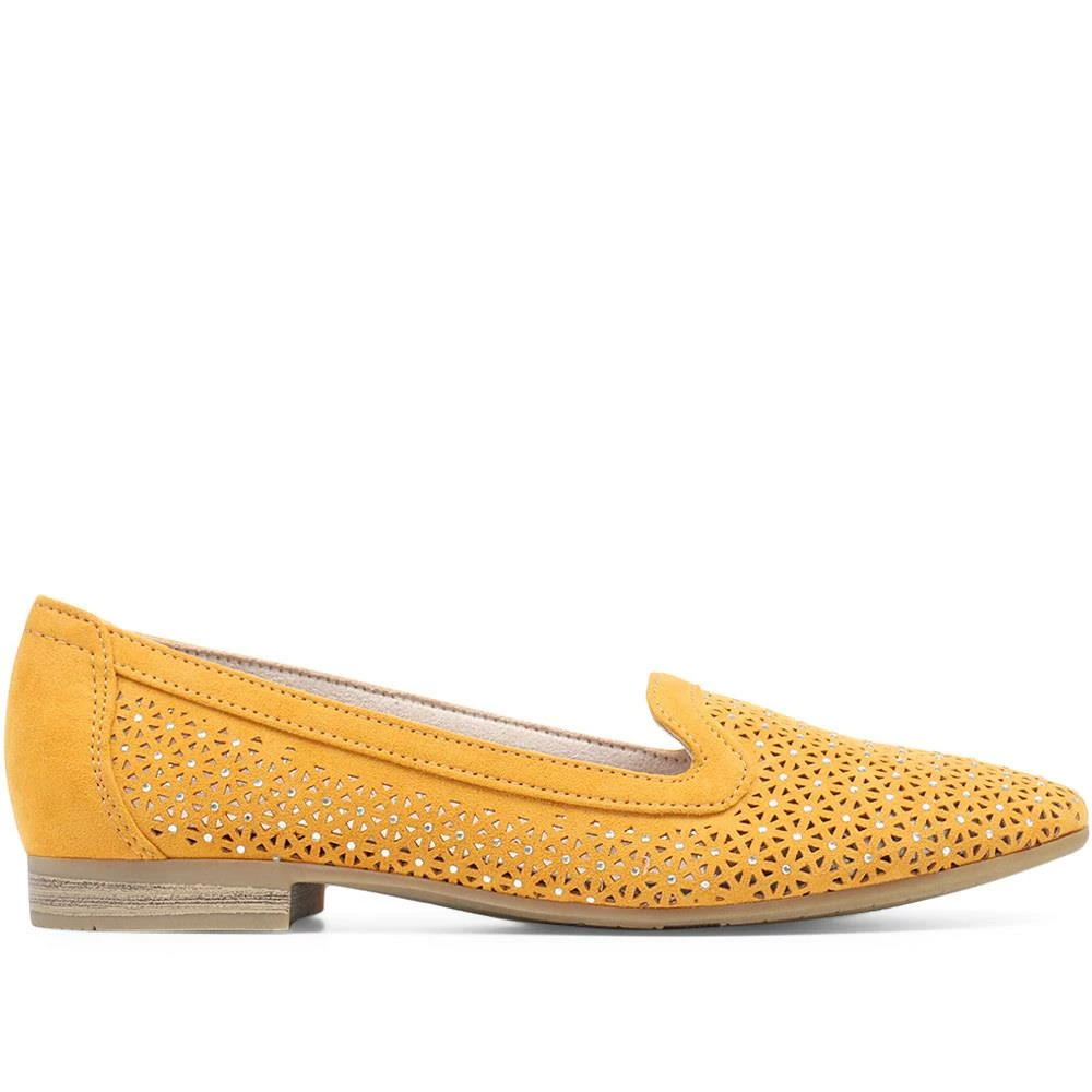 Imagined from a classic loafer design with a beautifully feminine twist, delicately embellished with micro-studding and a showcasing geometric cut-out design. Slip into the pretty ballerina flat and let the padded insole cushion your step, available in multiple colours you’ll only struggle with which one to choose.