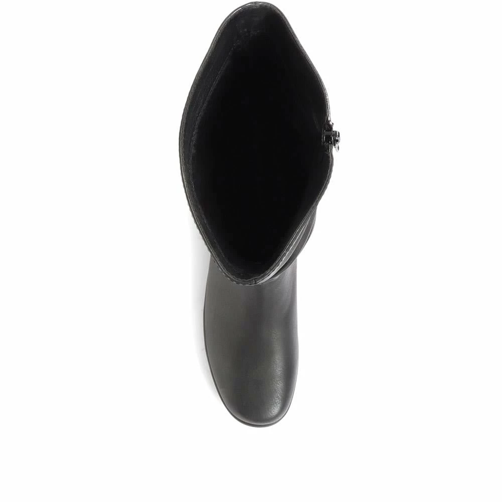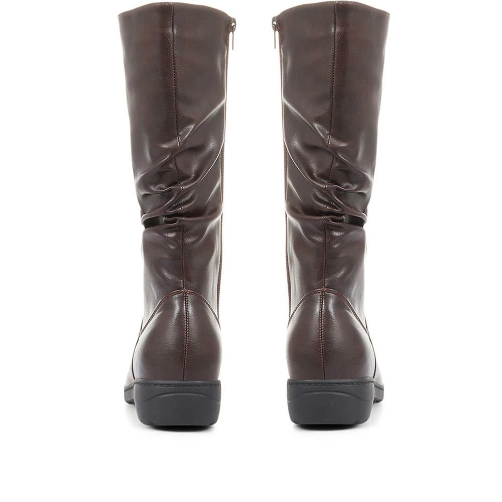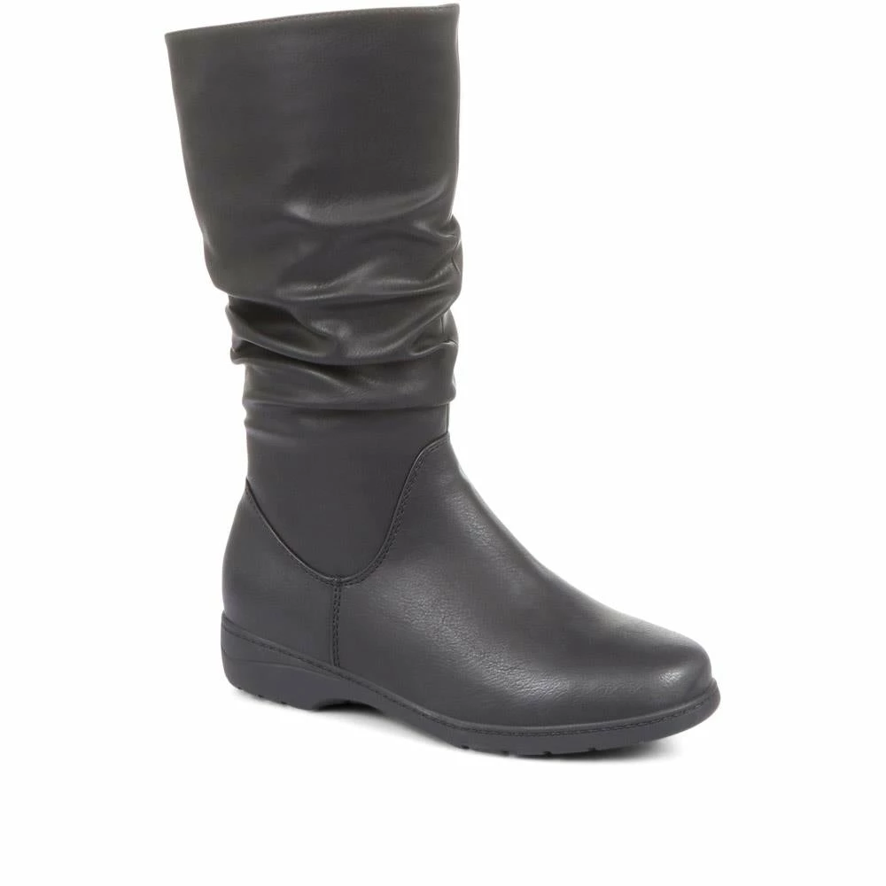 The perfect finishing touch to your casual looks, these ladies’ boots are crafted from soft, imitation leather. Styled in a flattering and versatile calf-height, the boots are imagined in a slouched profile. Secured with a discrete inside zip, the boots are lined with soft textiles for a comfortable fit.