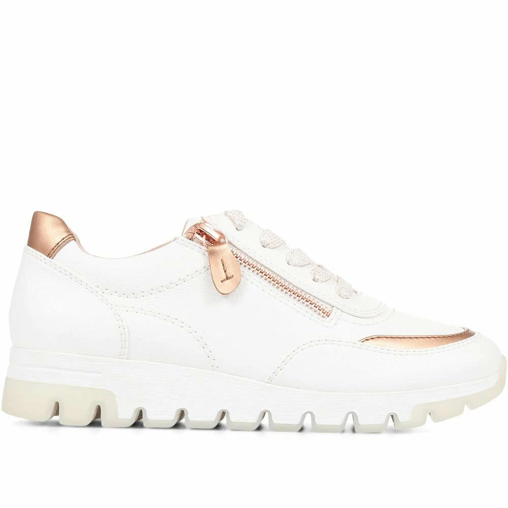 Contemporary and modern, these wedge trainers may look chunky but they?ve been designed with a surprisingly lightweight sole to keep you light on your feet. Styled with a classic lace-up design, these trainers are equipped with a zip fastening to the side so you can simply slip this pair on and off.