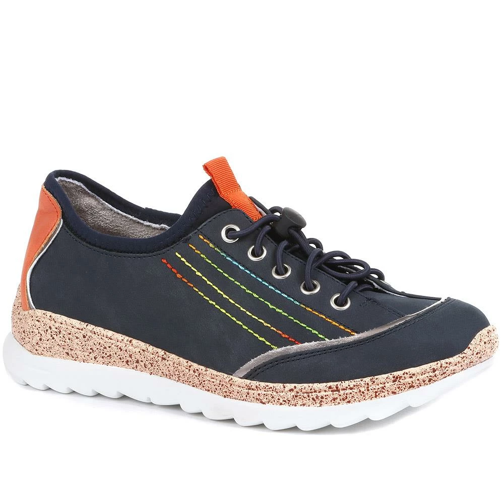 Featuring elasticated bungee laces for quick and easy put on, these sporty trainer shoes are imagined in a flexible upper with a soft inner lining. The cushioned footbed, dual density outsole, and slight hidden heel each lend comfort, support, and a subtle boost of height to the wearer.