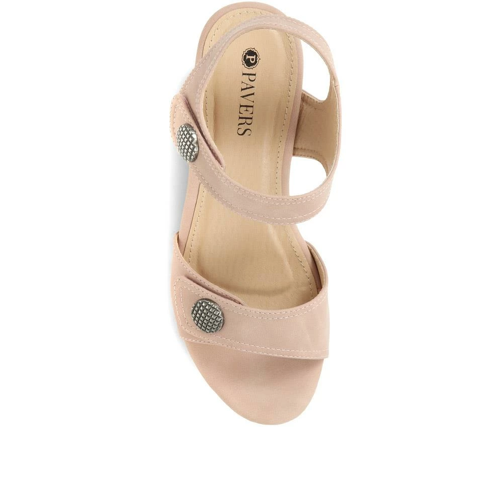 Suitable for casual days and special occasions alike, these chunky heeled sandals are a summer must-have. With a duo of touch-fasten straps at the ankle and across the forefoot, achieve an exacting fit with every wear. Poised on a cork block heel, these smart sandals offer springy but sturdy support through their comfort cushioned footbeds.