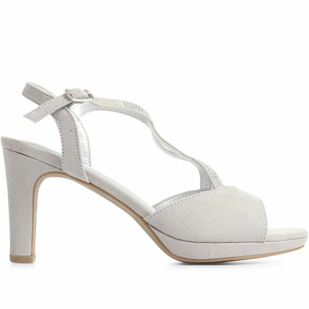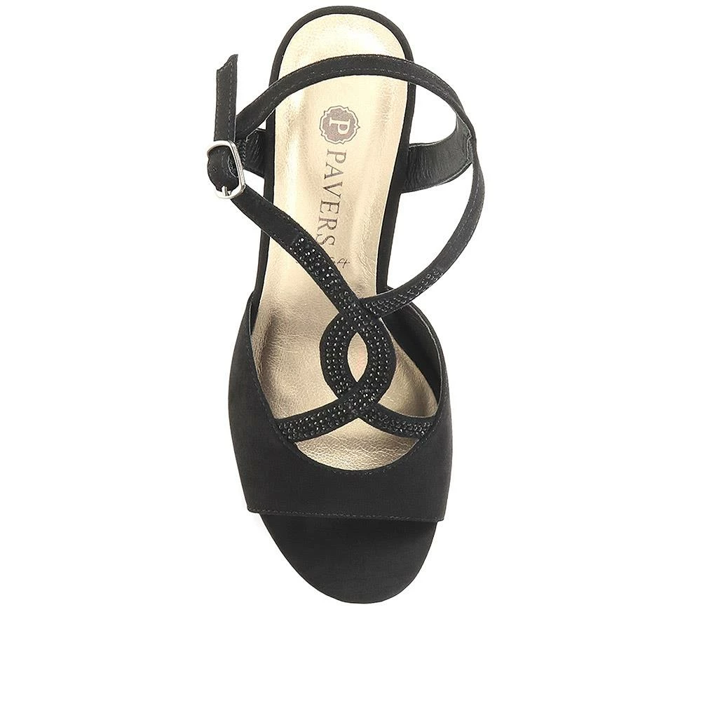 Poised on a stiletto heel, these strappy stilettos will see you through the part season in style. Made with a soft-to-the-touch textile surface and super soft cushioned footbed, the stiletto shoes are designed with the usual comfort features you can expect from Pavers. The classic peep-toe silhouette is complimented by the delicate diamante detail across the straps. Fastened at the ankle by a simple buckle for a fit tailored to you.