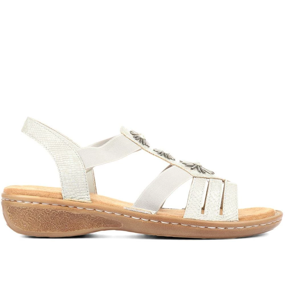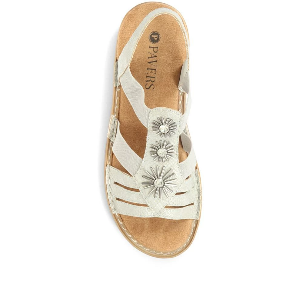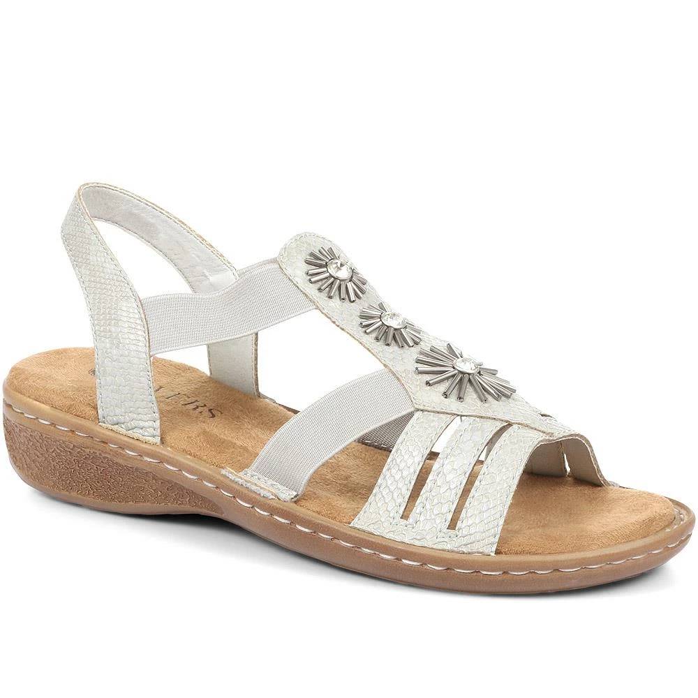 Step straight into pure comfort with our super lightweight sandals, embellished with bursts of beaded detailing, these slingback sandals promise to add a stunning update to your everyday style. The strappy silhouette features two subtle elastic straps that not only allow for easy slip on and off, but an exacting fit and excellent flexibility as you step. Complete with a deep cushioned footbed and a flexible outsole.