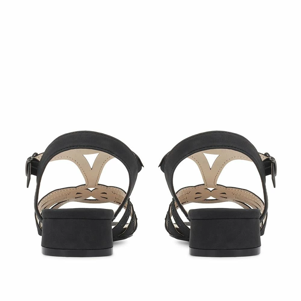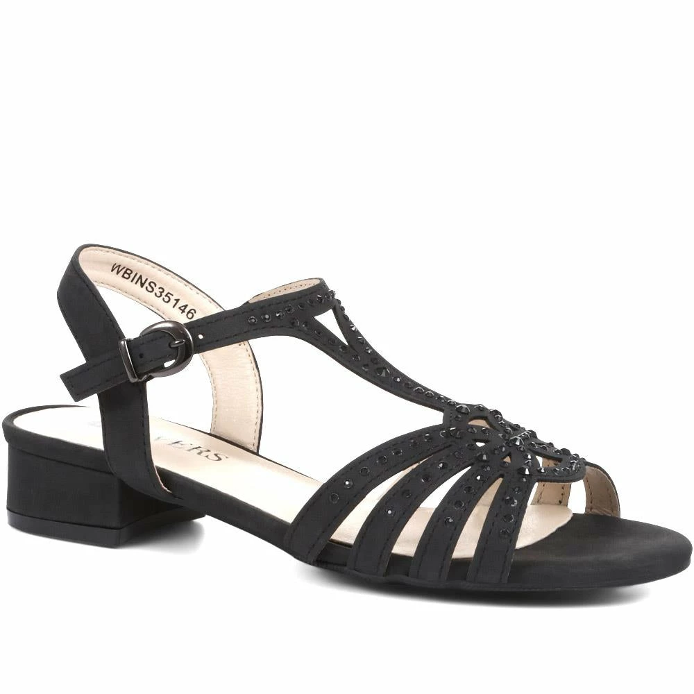 Elegant and stylish, these beautiful ladies’ sandals are the perfect finishing touch to special occasion and evening looks. Imagined in a striking, yet supportive, T-bar profile, the sandals are secured at the ankle with a buckle. Poised upon a low block heel, the straps of the sandals are subtly embellished for added twinkle.