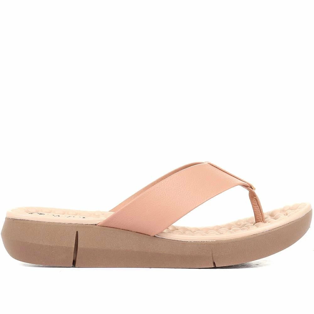 The perfect choice for effortless wear on a warm day, these ladies sandals are imagined in a classic toe-post silhouette. Imagined with wide straps for optimum comfort and support, as well as a striking profile, the simple sandals offer endless styling opportunities. The flip flops sit upon a cushioned insole for all day comfort.