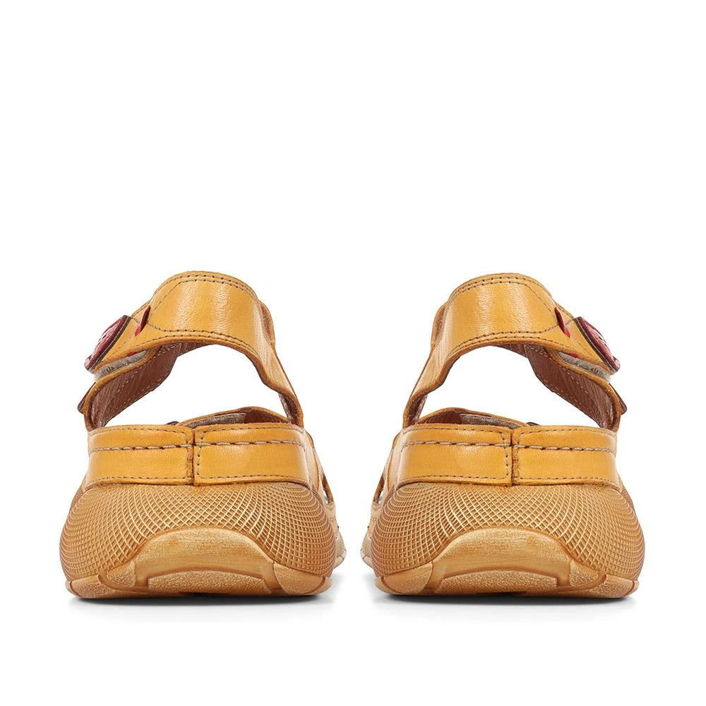 Go out and enjoy the sunshine in these touch-fasten sandals. Made with leather uppers, each of the three straps are touch-fasten for effortless put-on and fit. Based on walking sandal outsoles for greater traction underfoot, these summer sandals have raised heels for a comfortable boost of height. The leather insoles provide breathable, cushioned support – making these sandals perfect for sunny weather days.