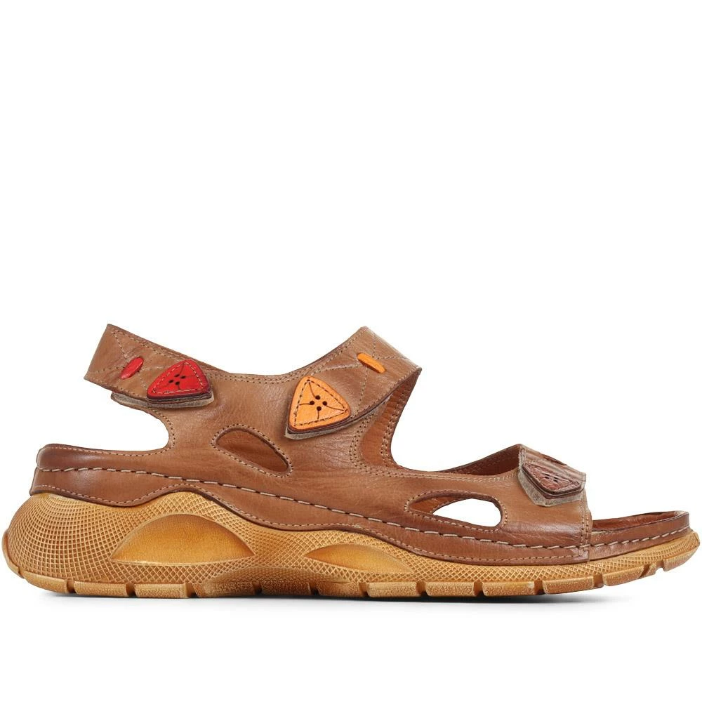 Go out and enjoy the sunshine in these touch-fasten sandals. Made with leather uppers, each of the three straps are touch-fasten for effortless put-on and fit. Based on walking sandal outsoles for greater traction underfoot, these summer sandals have raised heels for a comfortable boost of height. The leather insoles provide breathable, cushioned support – making these sandals perfect for sunny weather days.