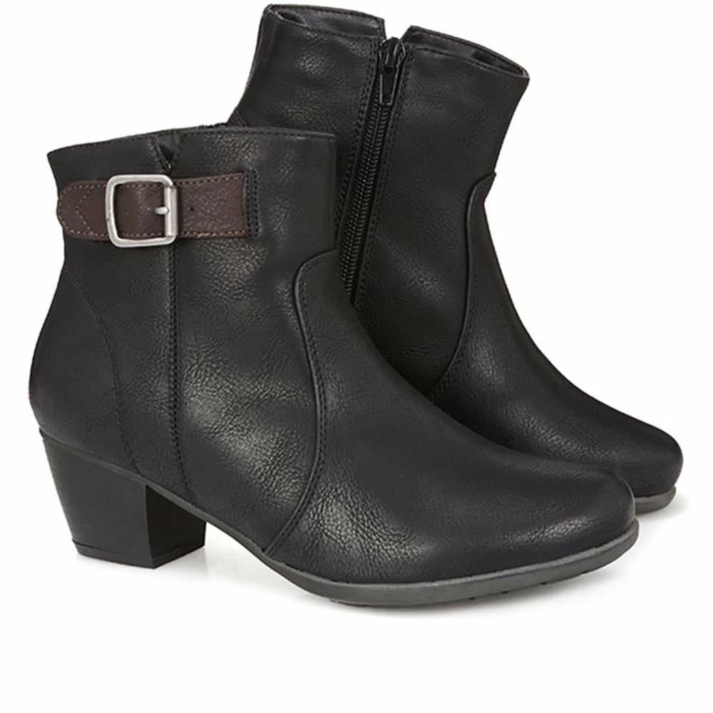 A heeled ankle boot that promises a smart edge to your casual wear, created with a contrast ankle strap with buckle for true country chic appeal. Padded lining, cushioned insole and side zip fasten completes the shoe.