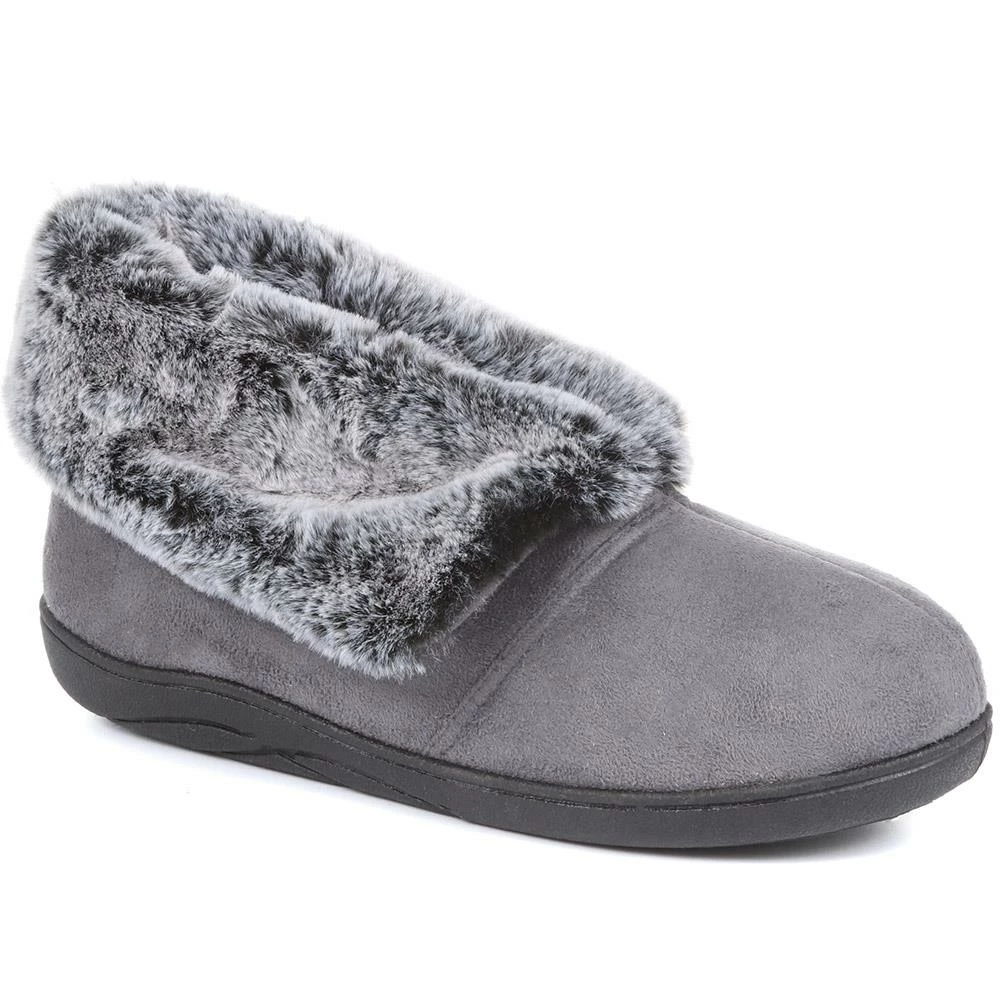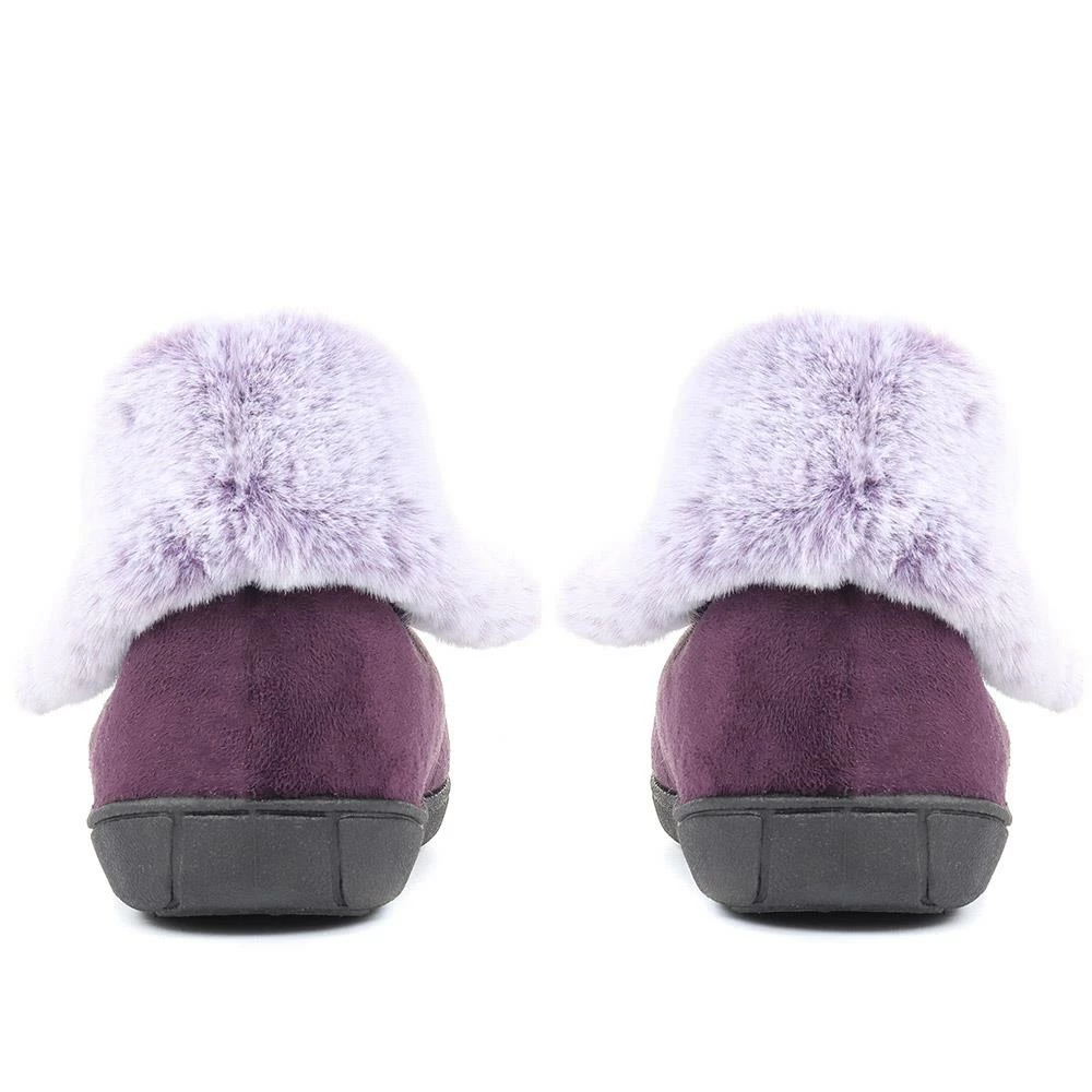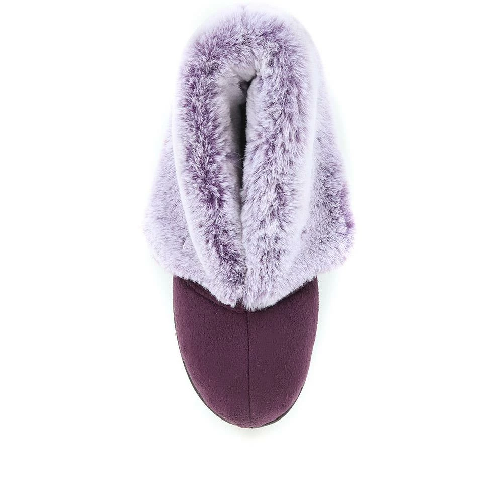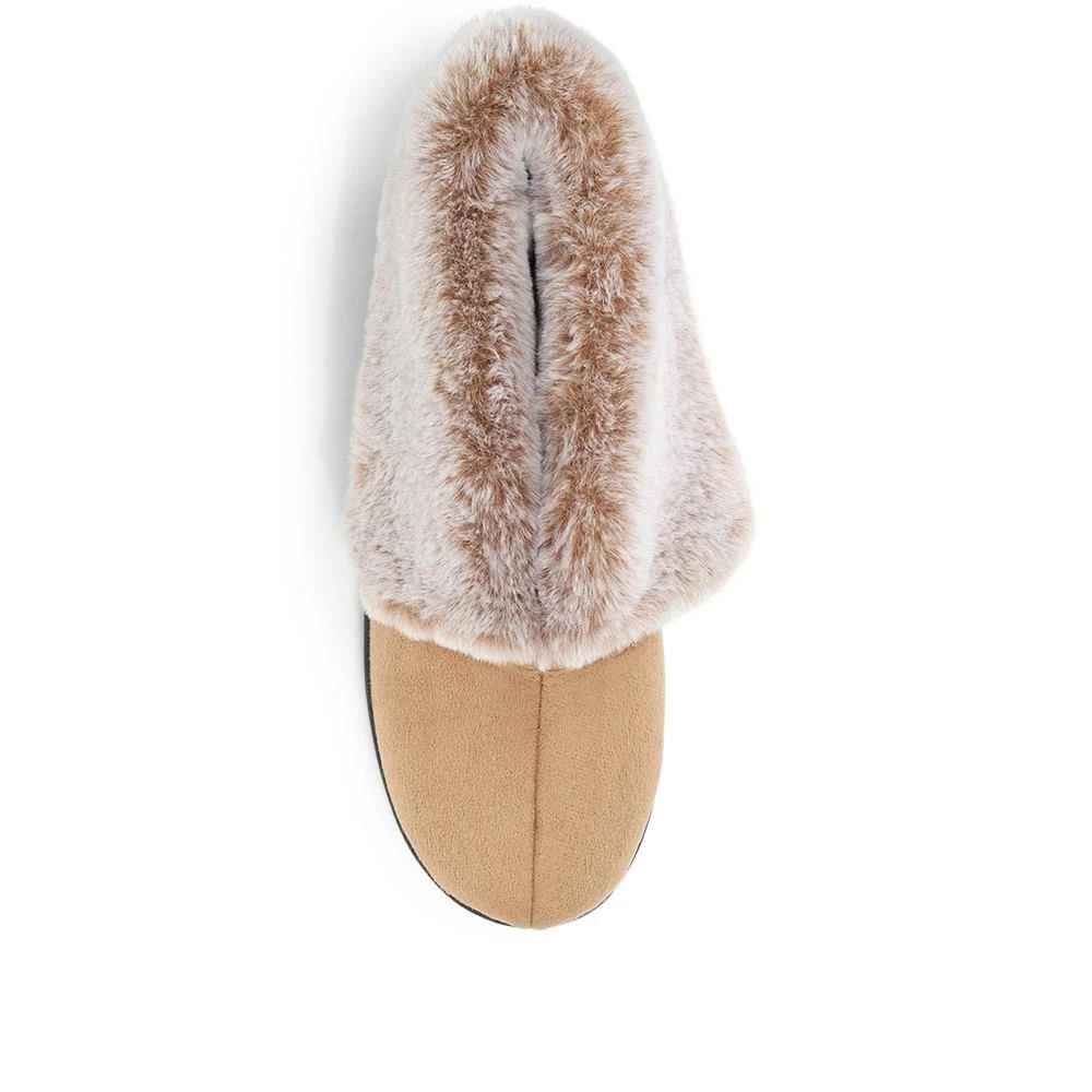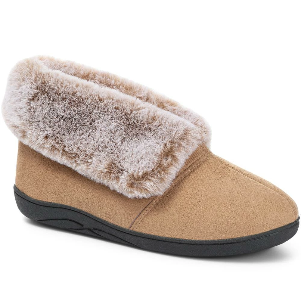 Step up the snuggle this winter with the super soft slipper boot, created with faux fur collar that can be folded up for extra warm insulation. The cushioned insole lets your foot sink into absolute comfort for long-lasting wear.