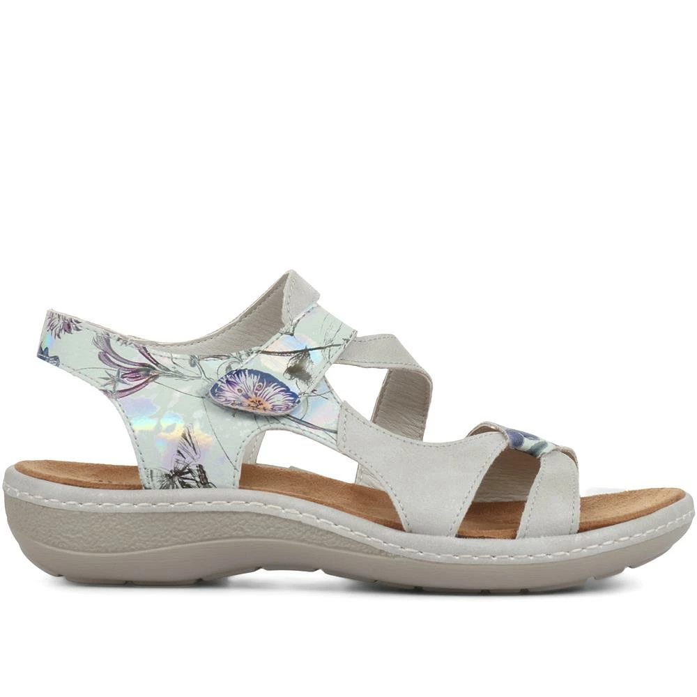 These flat sandals feature a strappy design for comfortable wear plus plenty of style! The mix of floral print and plain straps interlink and elegantly cross over the foot for an all-encompassing and supportive fit which is secured with a touch fastening point at the side. The deep cushioned insole and the lightweight sole work in unison to provide lasting comfort support.