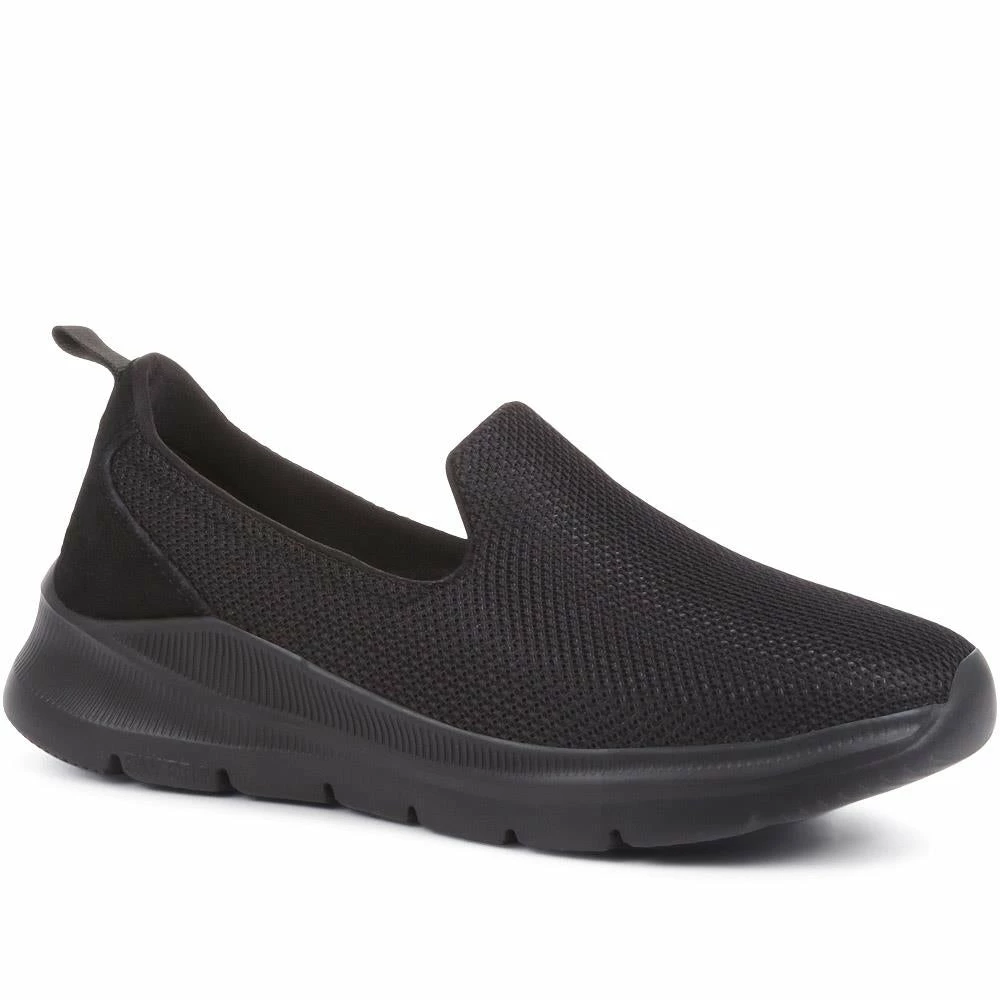 Flexible and supportive, our slip-on trainers offer excellent cushioned comfort, perfect for active days. Designed with a breathable sport knit upper, these trainers are fitted with a memory foam insole that forms to fit the shape of your foot to give personalised underfoot cushioning. Complete with an extra lightweight and flexible traction sole.