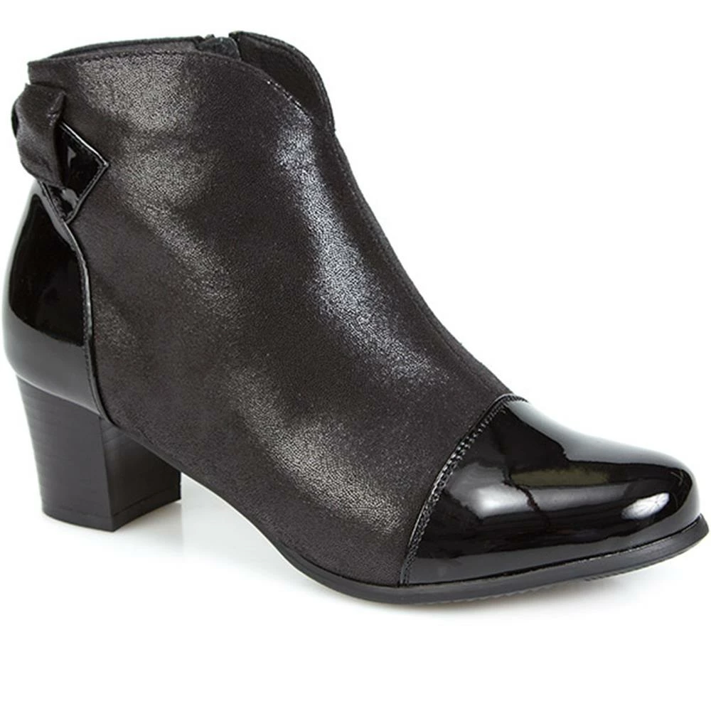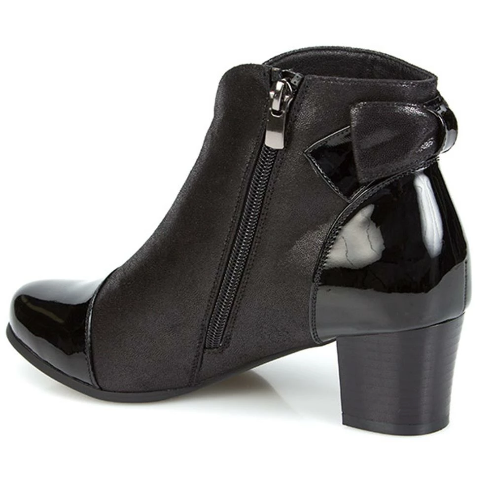 Practical and pretty, these wider fitting ankle boots will go with everything!Boasting stunning patent panels and a feminine bow detail at the back.